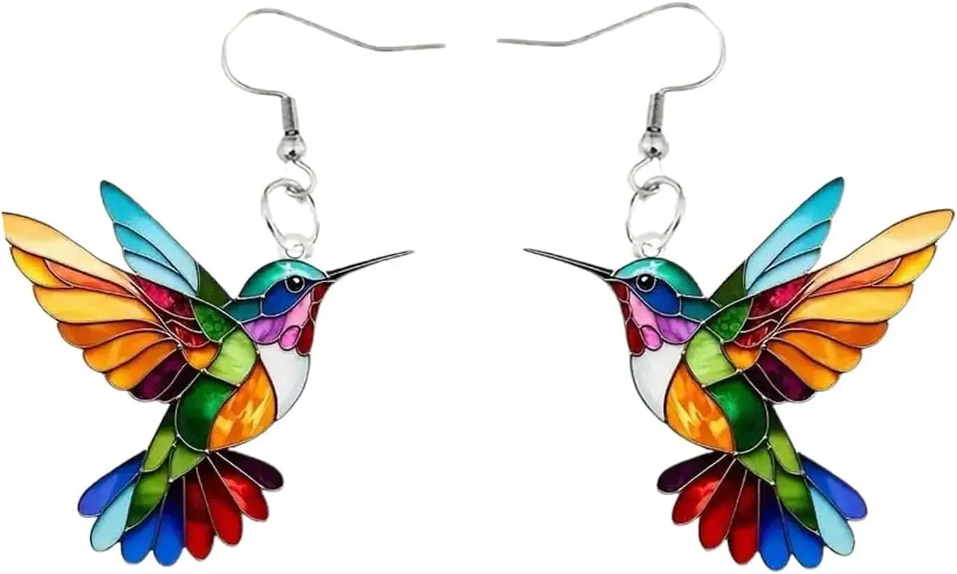 Collar con pendientes colgantes de colibrí colorido, collar de colibrí 2D, collar de pájaros para mujeres y niñas amantes de las aves.