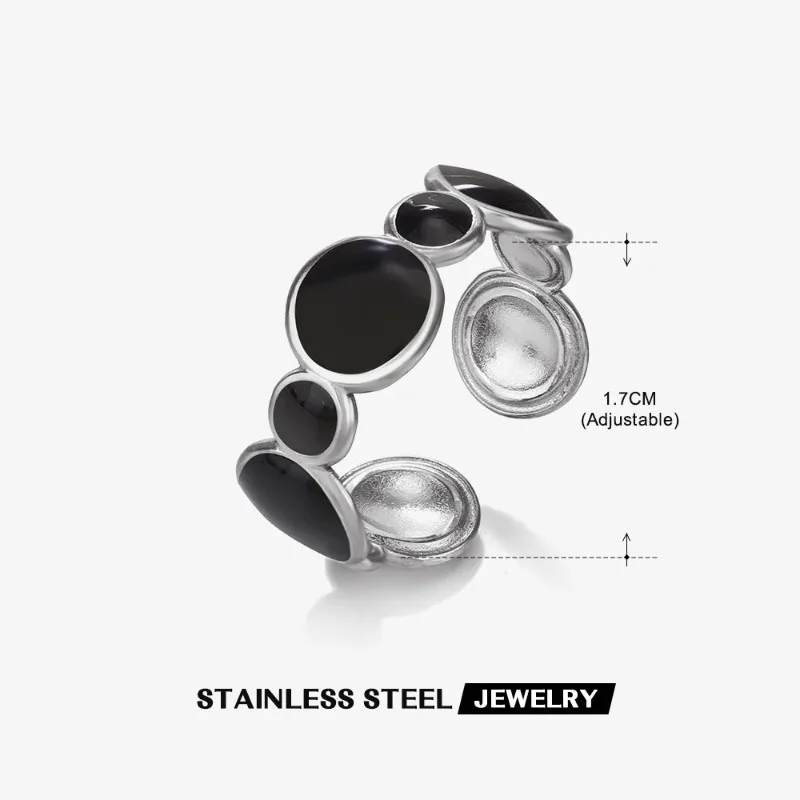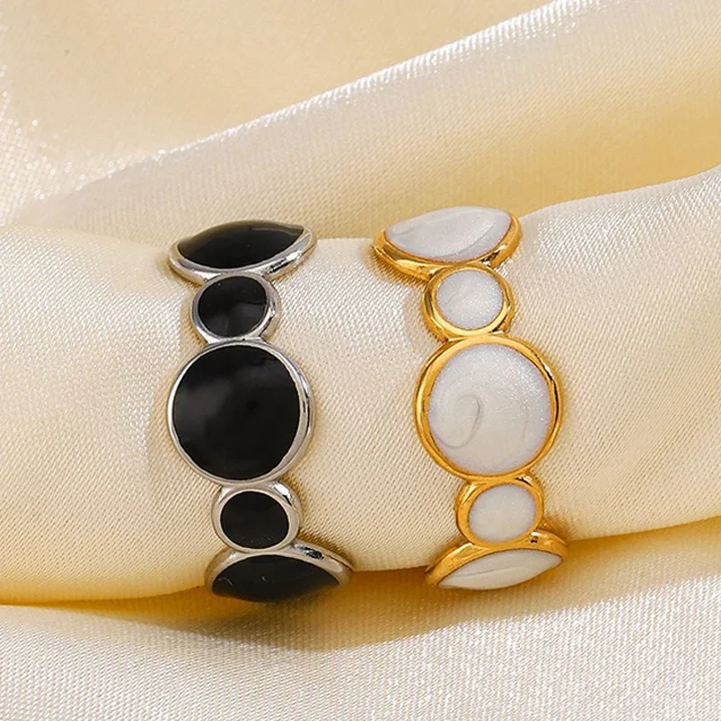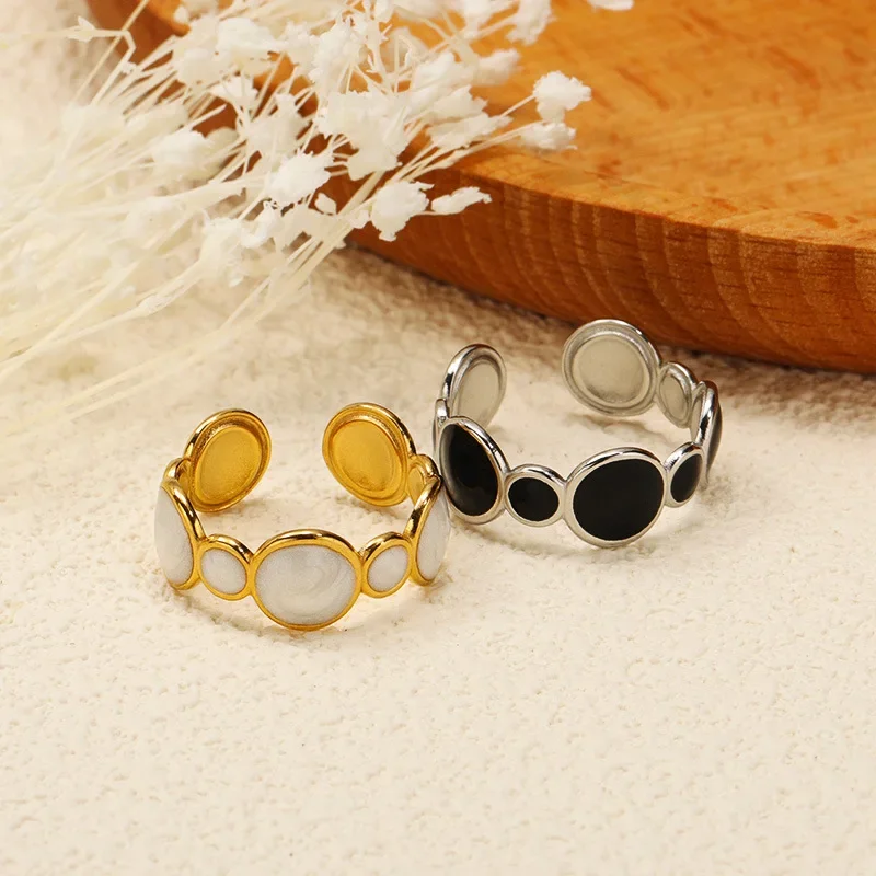 Anillos de aceite DLseek redondos, negros y blancos, para mujer, de moda, abiertos, ajustables, chapados en oro, de acero inoxidable, con dijes, joyería, regalos.