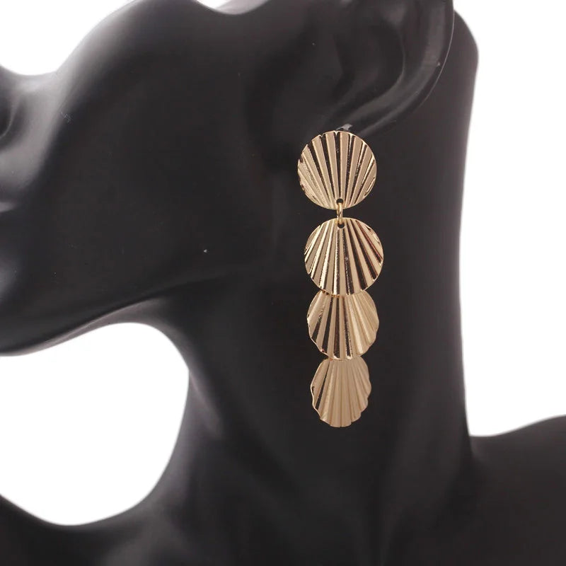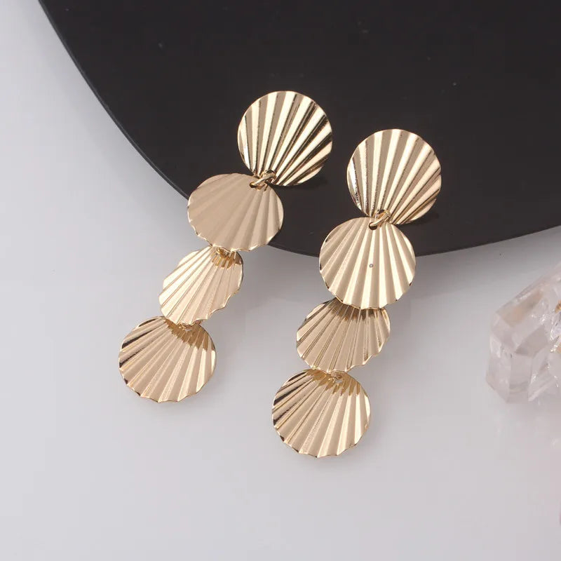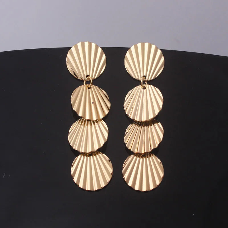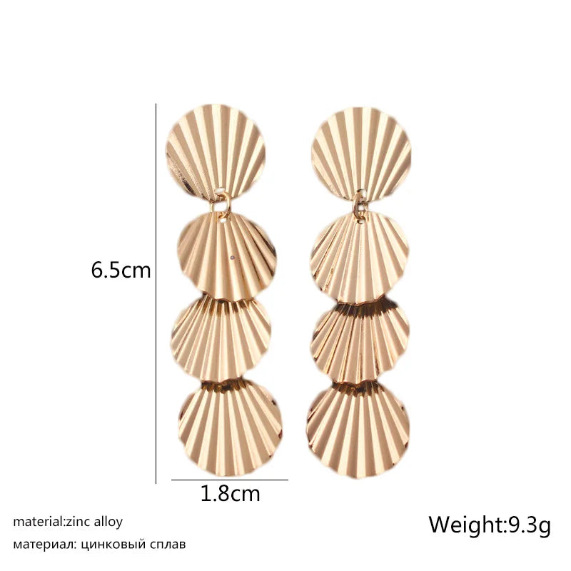 Pendientes colgantes de metal plegables para mujer, con forma de concha, aretes colgantes, artículos geniales, joyería de moda para niñas, aretes para mujer