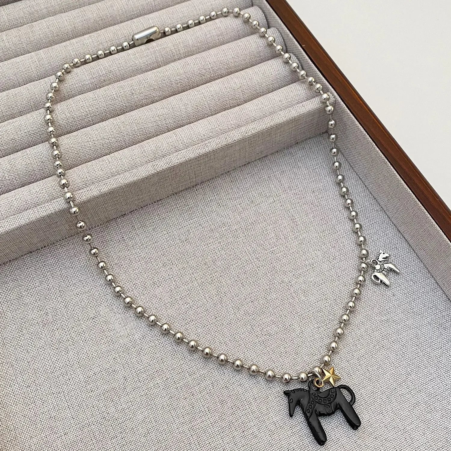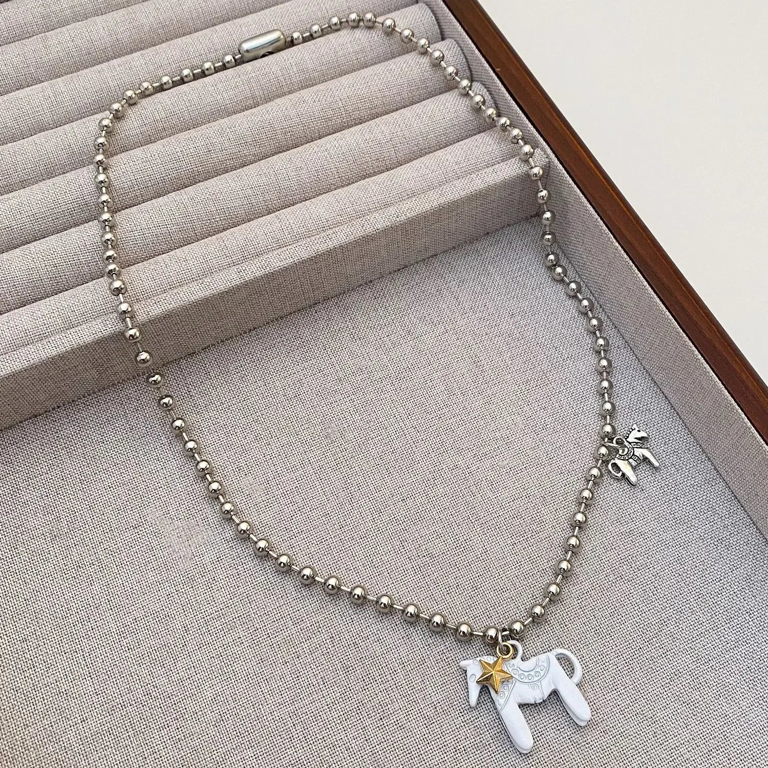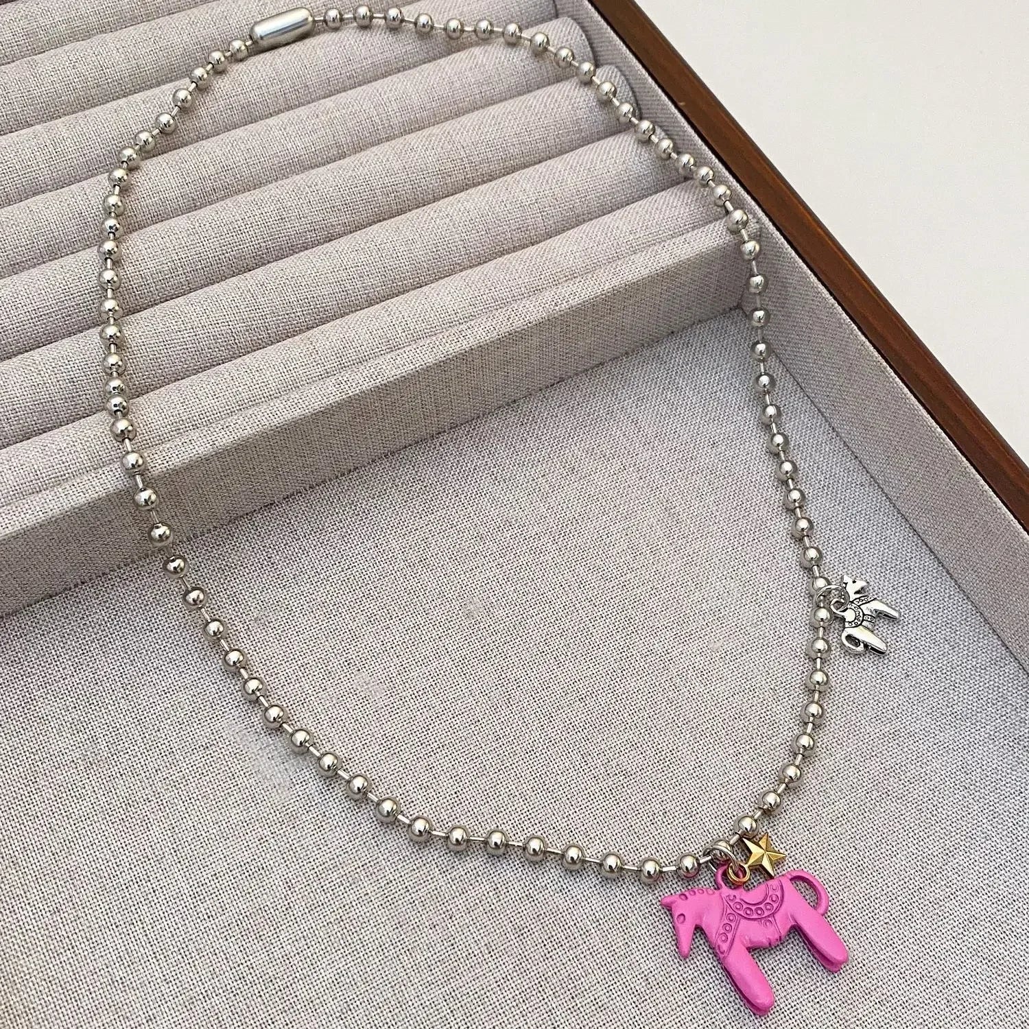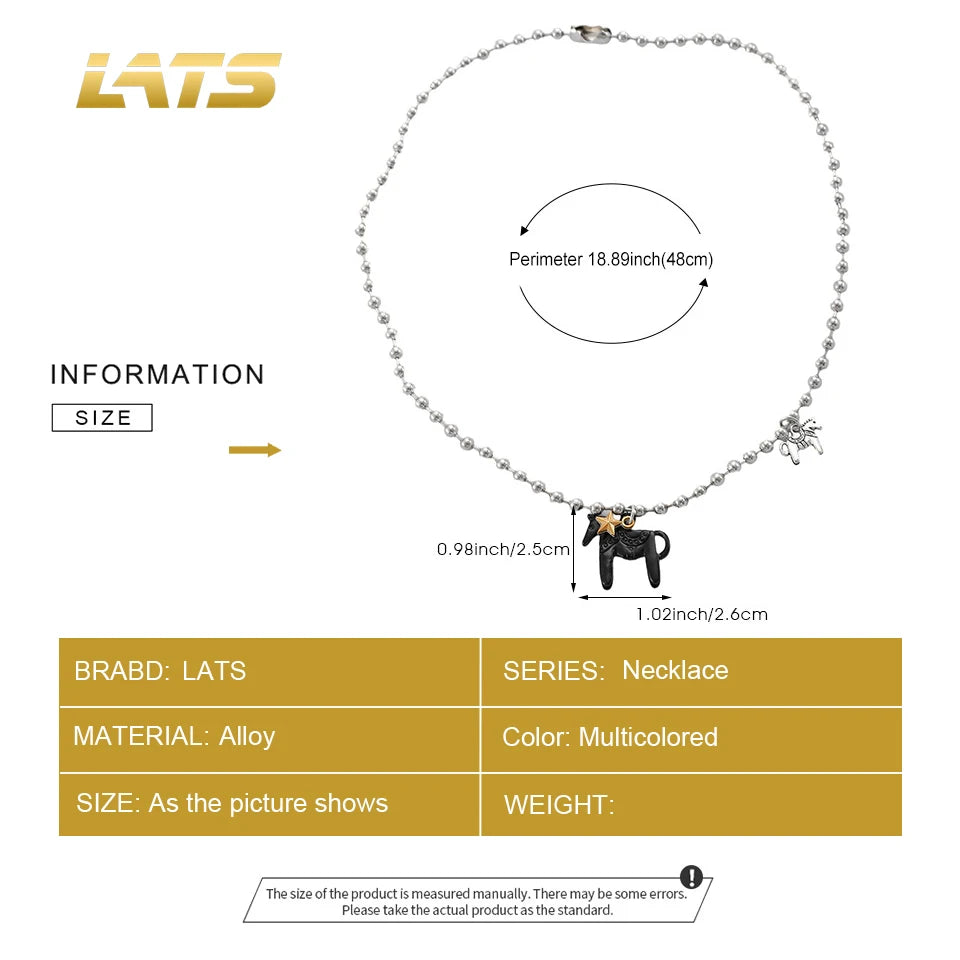 Collar con colgante de caballo de esmalte LATS, divertido y lindo, color blanco, negro y rosa, para mujer, con cuentas de aleación, cadena, gargantilla, joyería de moda.