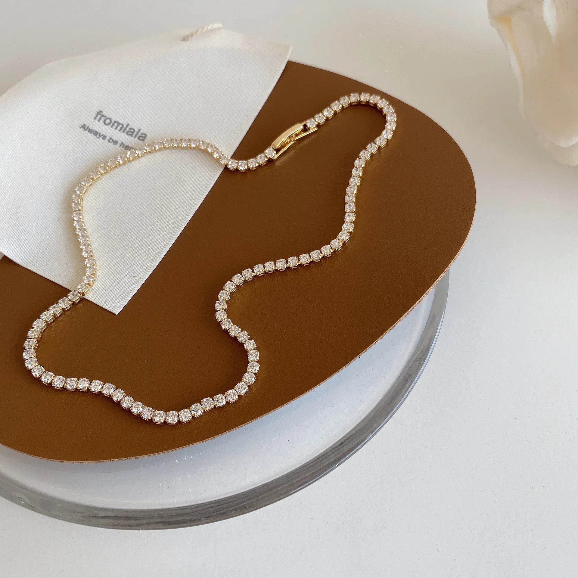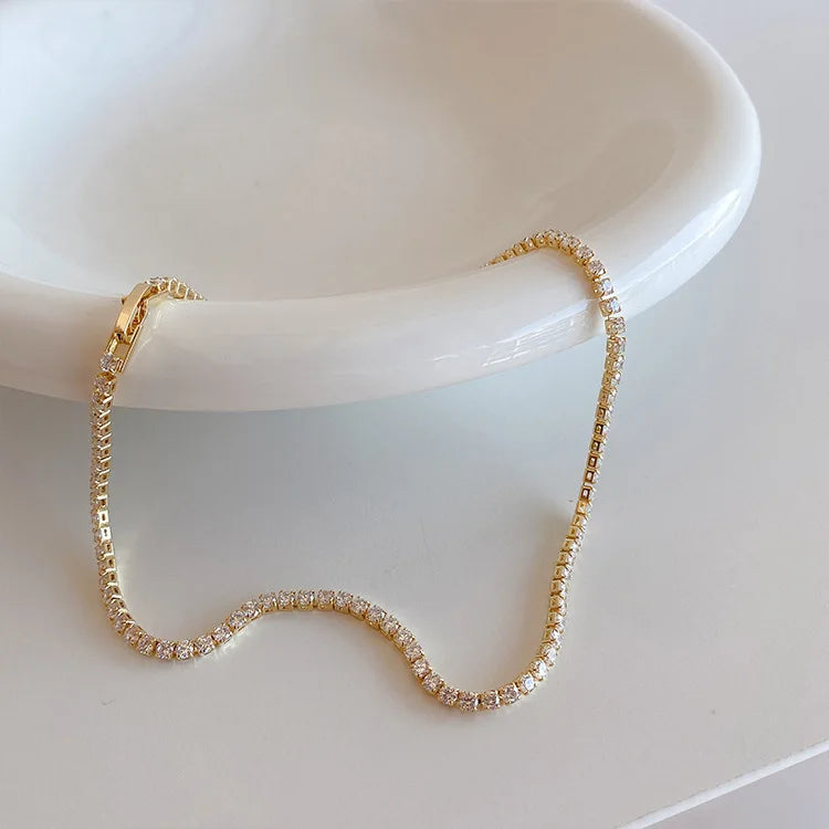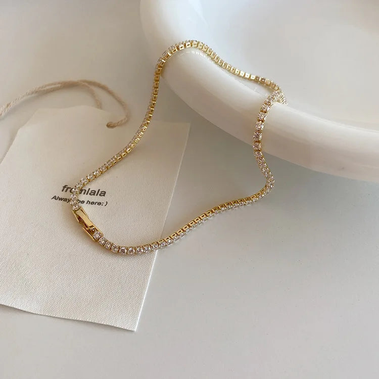 Collar de cuentas con brillantes diamantes de imitación de Minar Must Have para mujer, cadena de cobre bañada en plata y oro real de 14 quilates, gargantillas al por mayor