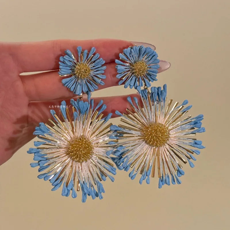 Angie Schuppe New Colorful Sun Flower Raffia Bead Earrings For Women Girl Handmade Bohemian Rattan Knit Earrings Summer Party Jewelry Gifts