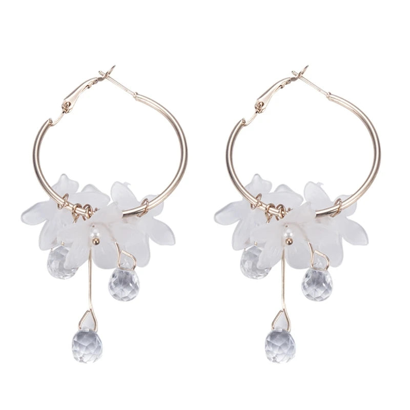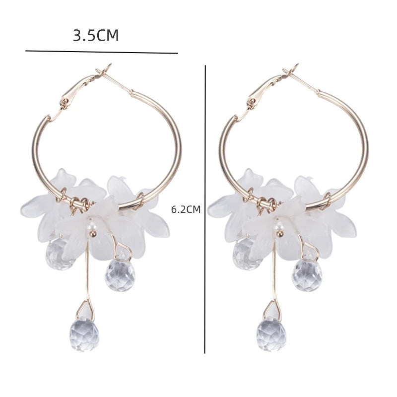 Nuevos pendientes coreanos de flores de cristal transparentes y dulces para mujer, pendientes largos con borlas y temperamento, joyería elegante para mujer, regalo