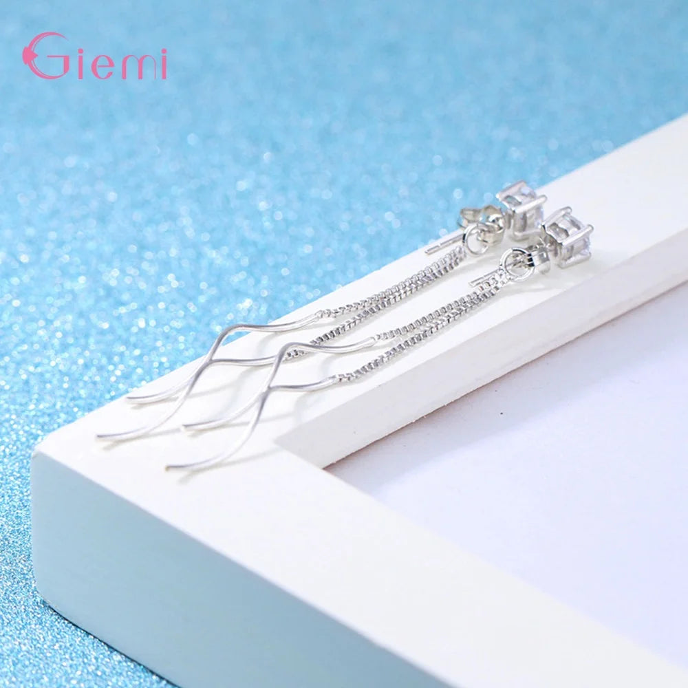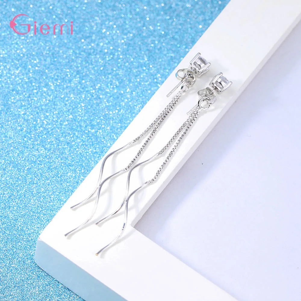 Pendientes largos con borla y circonita cúbica de plata de ley 925 con temperamento para mujer y niña, joyería con personalidad