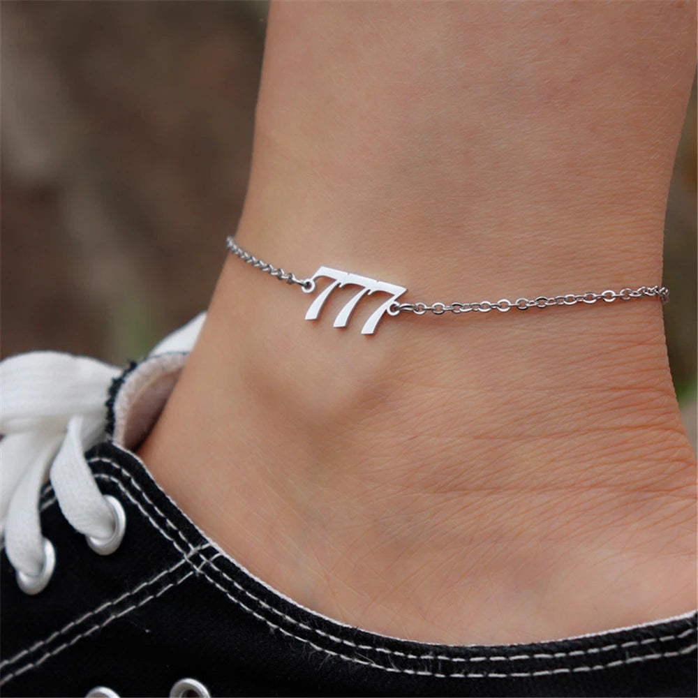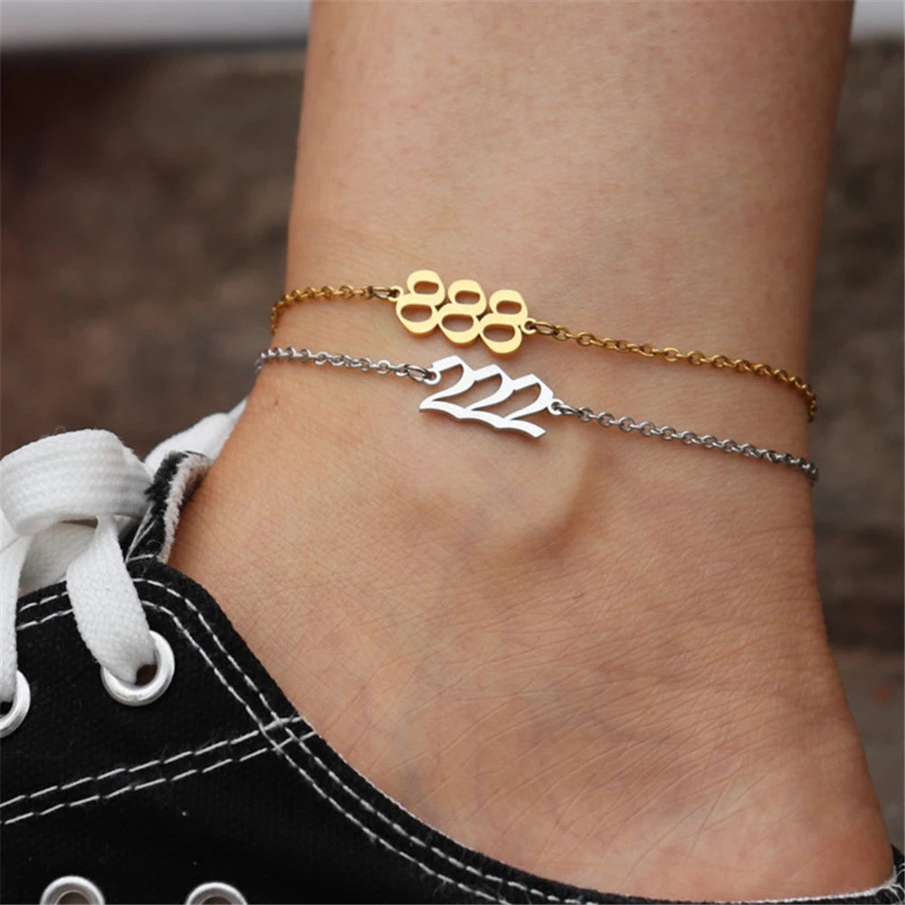 111 222 333 444 555 666 777 888 999 Angel Number Anklets For Women Stainless Steel Leg Bracelet Beach Foot Goth Jewelry BFF Gift