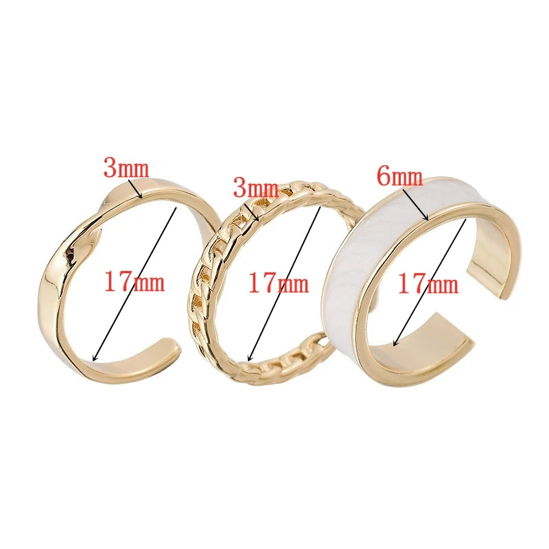 3pcs/set Bohemian White Enamel Round Metal Ring Sets Geometric Twist Open Adjustable Rings Sets for Women Girl Wedding Jewelry