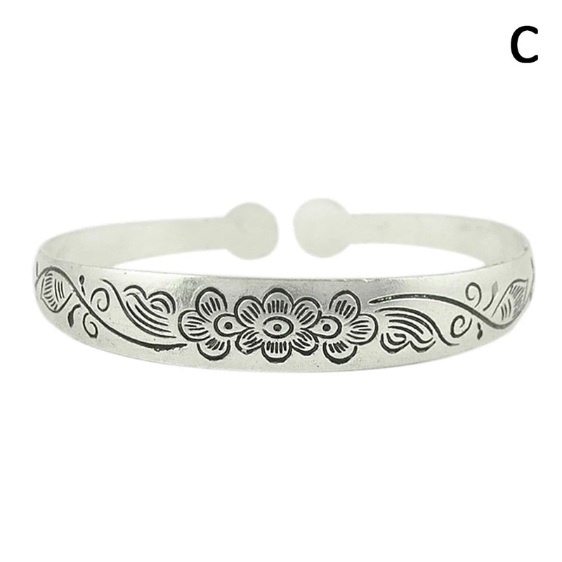 This 9styles Vintage Silver Bangles Bracelet showcases a classic design crafted from authentic Tibetan silver, offering a timeless addition to any jewelry collection. The bracelet features a vintage silver plating technique that highlights its intricate plant-shaped pattern, making it both a fashionable and elegant accessory.