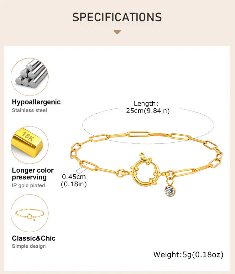 This anklet’s stainless steel construction combined with advanced plating technology delivers outstanding rust resistance and strength. Its adjustable paperclip chain design not only adds a modern aesthetic but also enhances comfort and flexibility around the ankle. Crafted with non-toxic and eco-conscious materials, it prioritizes wearer safety and durability without compromising style. Whether worn alone or layered, this gold plated anklet offers reliable performance, making it a must-have piece of summer foot jewelry.