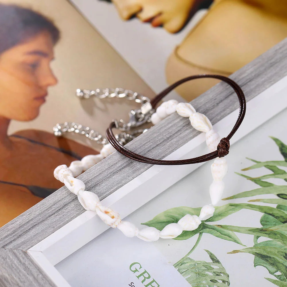 This anklet set blends resin and zinc alloy metals with genuine leather to achieve a balance of toughness and comfort. The resin shells are lightweight and natural-looking, perfectly complementing the bohemian vibe many women seek in summer foot jewelry. The zinc alloy metal parts resist rust and wear, maintaining the anklet’s attractive finish over time. Leather elements add flexible adjustability, ensuring the anklet stays securely in place while allowing breathability. Overall, this set offers a superior combination of fashion-forward design and long-lasting performance for women looking to enhance their summer beachwear with stylish barefoot anklets.