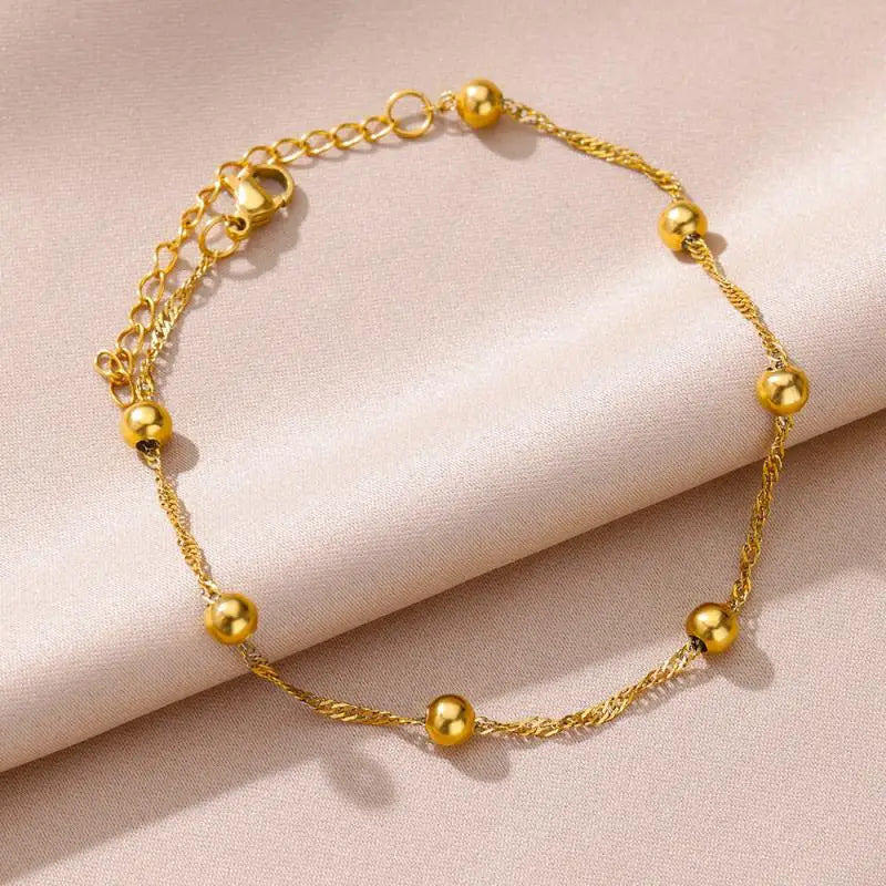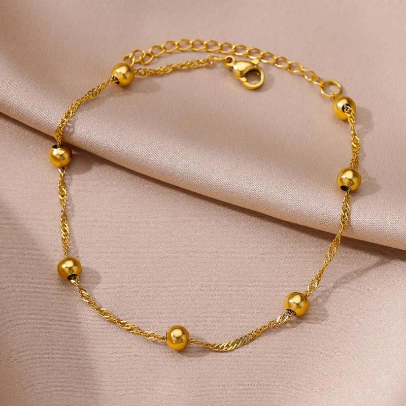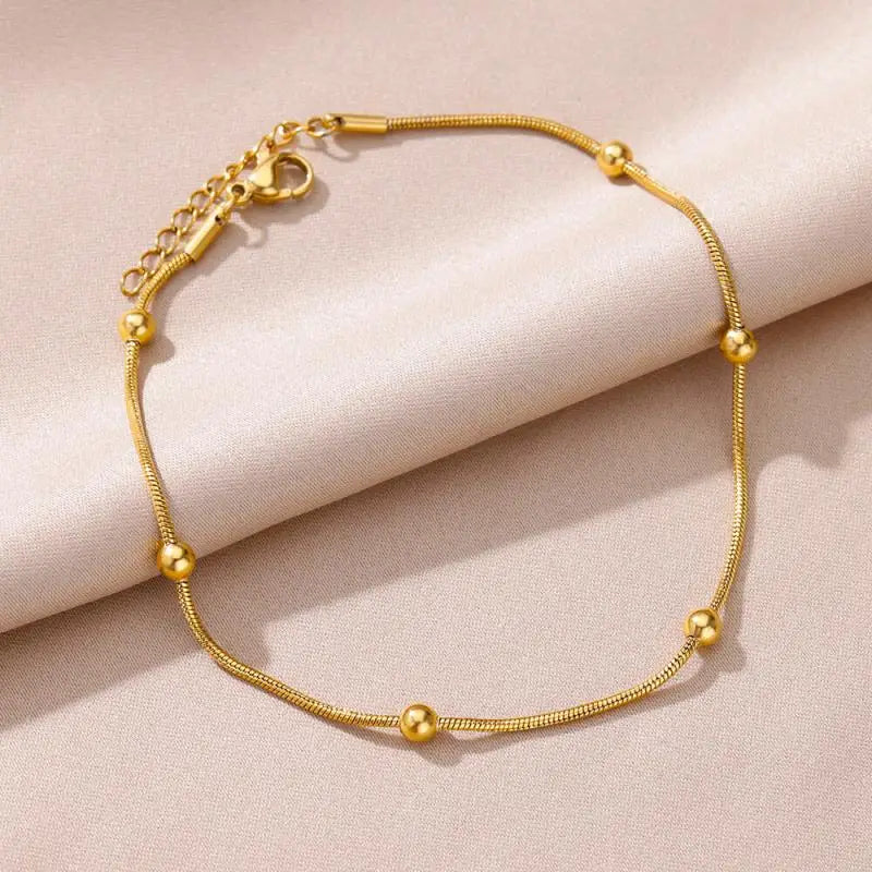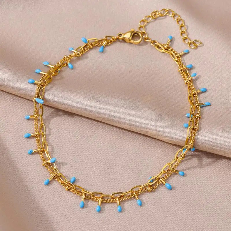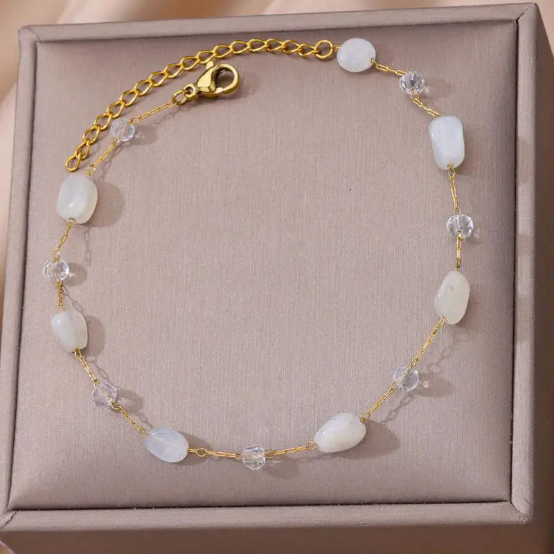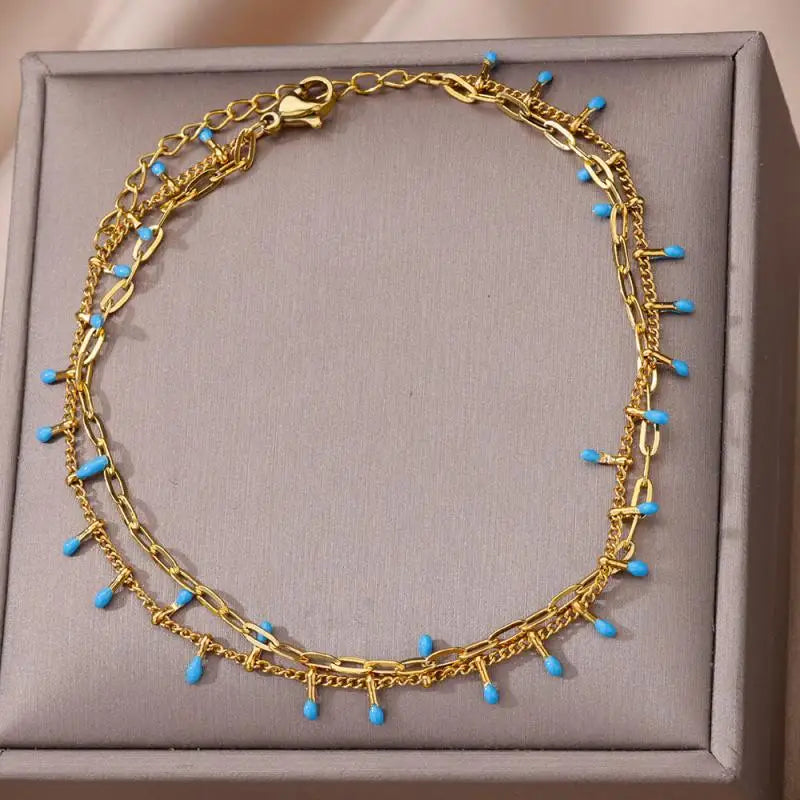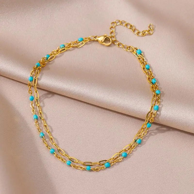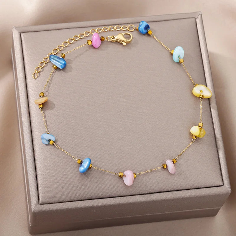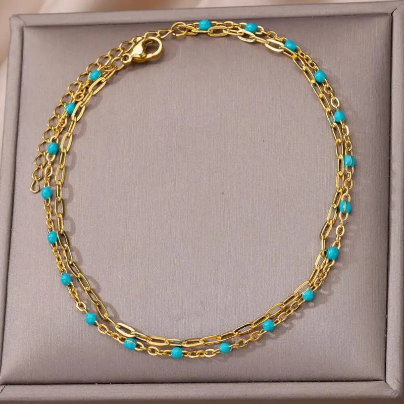 Anklets for Women Stainless Steel Stone Beaded Chain Anklet Summer Beach Accessories Boho Leg Bracelets Jewelry Tobilleras Mujer