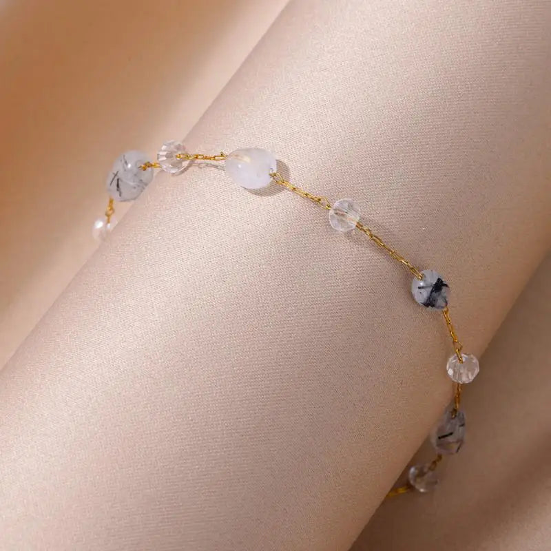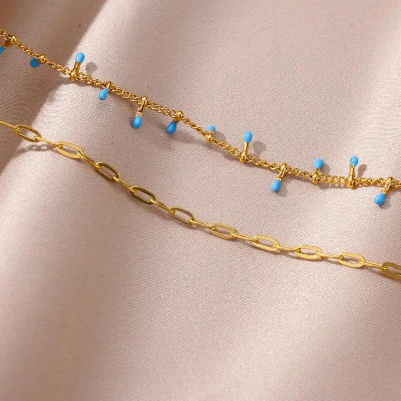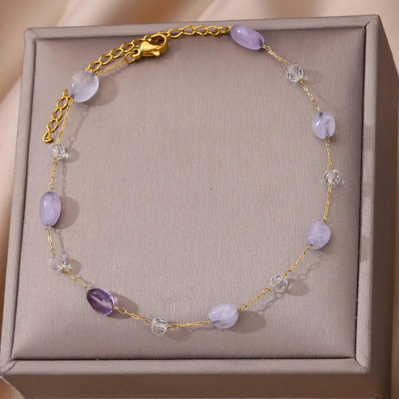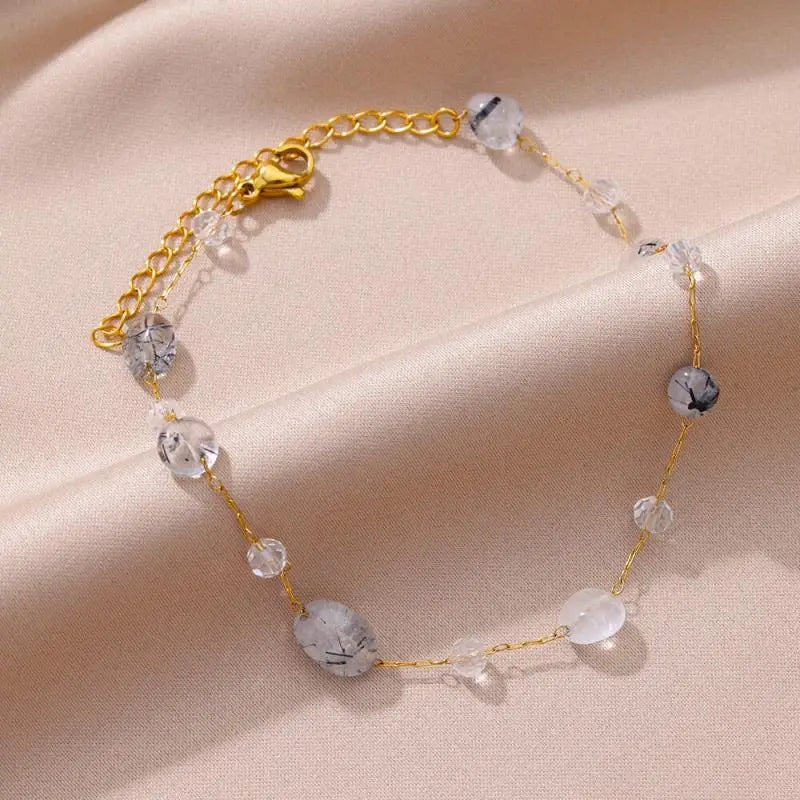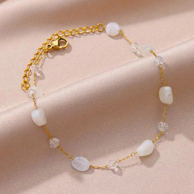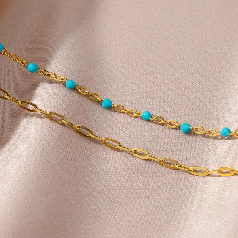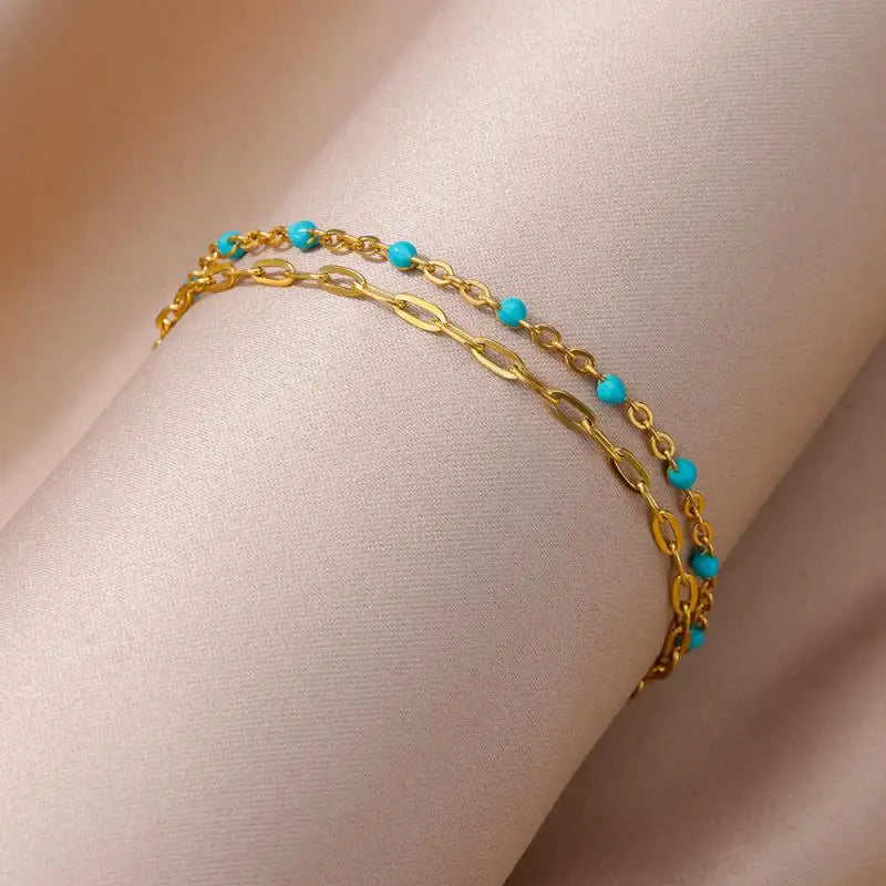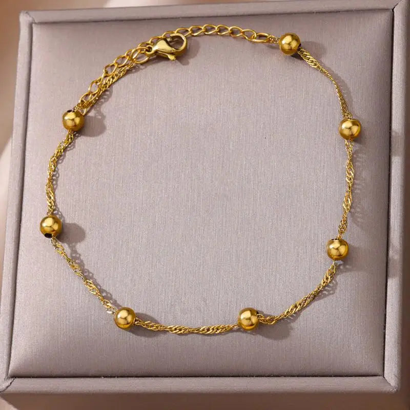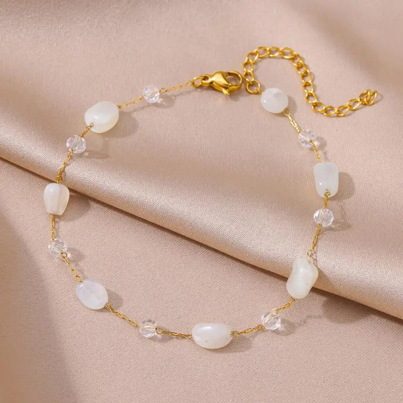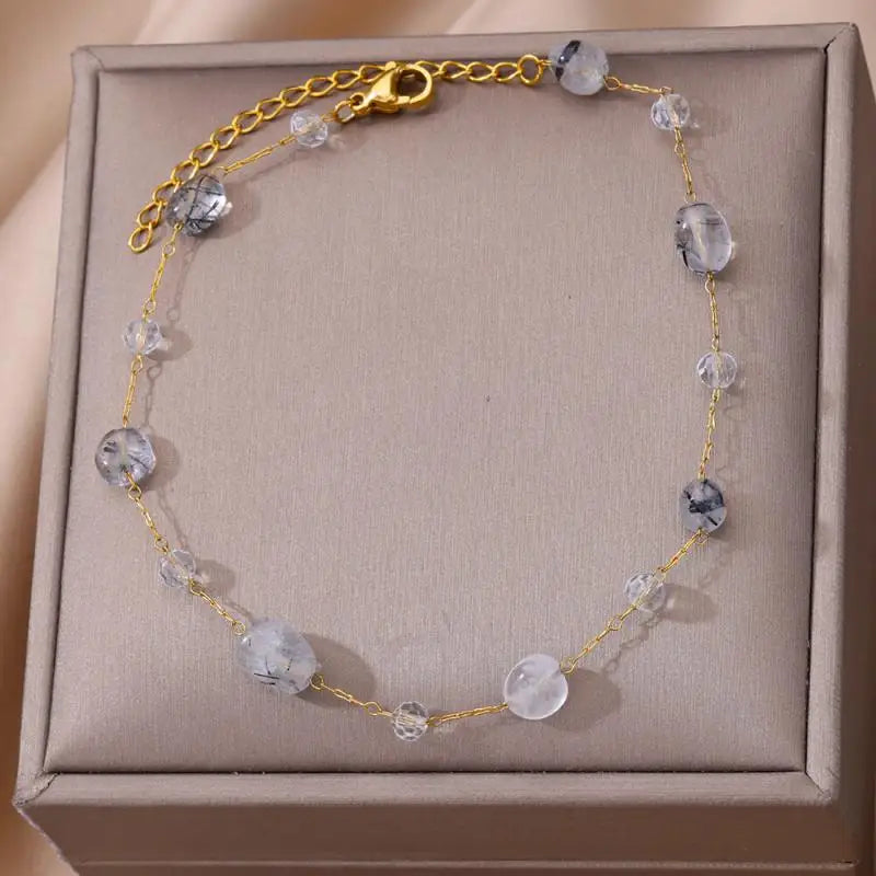 Anklets for Women Stainless Steel Stone Beaded Chain Anklet Summer Beach Accessories Boho Leg Bracelets Jewelry Tobilleras Mujer