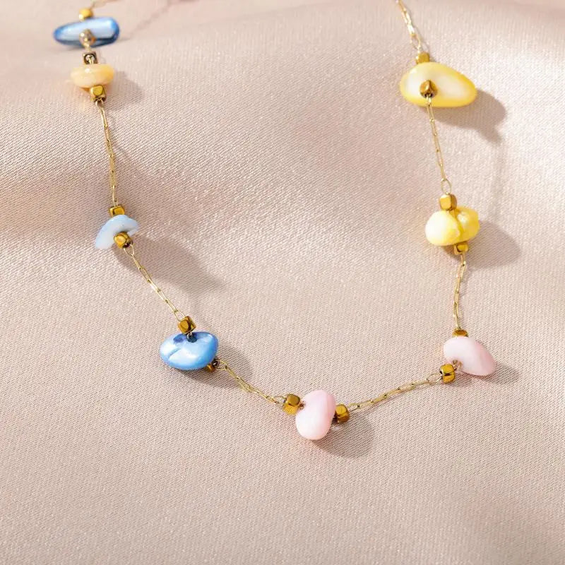 This stylish anklet combines durable stainless steel with eye-catching stone beads to create a perfect summer beach accessory. Designed with a 25 cm length and an 18k gold metal surface, this anklet adds a classic boho flair to any outfit.