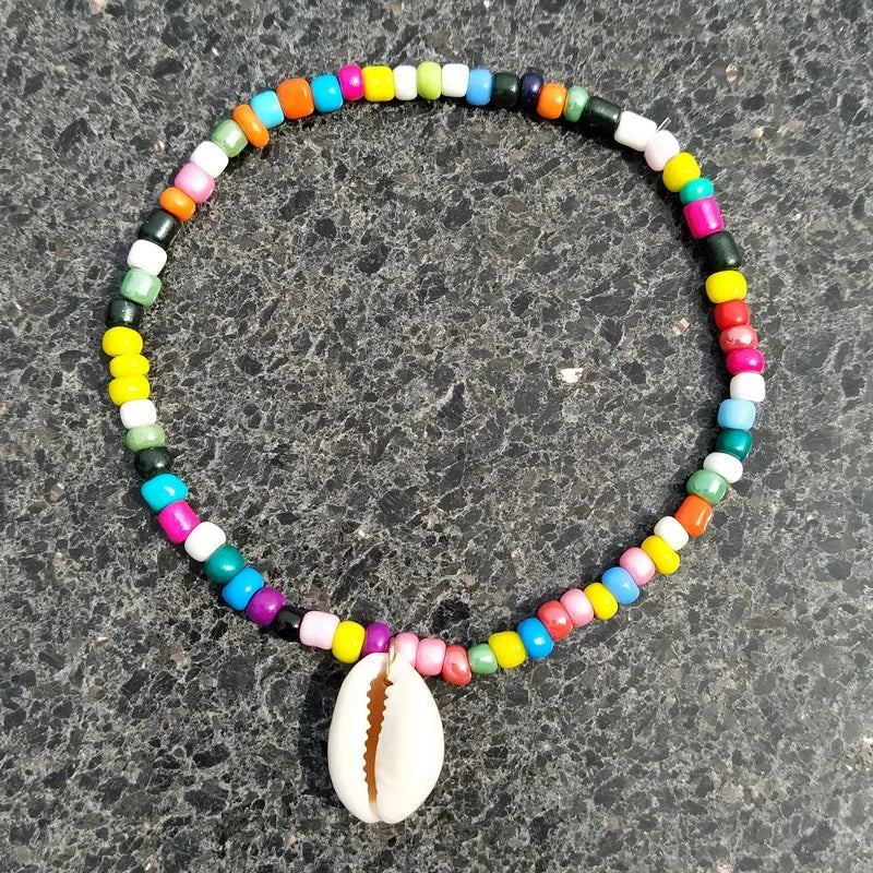 Compared to typical anklets in the fashion jewelry category, this model stands out with its eye-catching rainbow color palette and the addition of natural shell accents. While many anklets focus on metallic elements, this elastic seed bead bracelet offers a lightweight, allergen-free alternative that caters to women who prefer subtle, nature-inspired accessories. Its 22.5 cm length suits most ankles comfortably, making it versatile for everyday summer wear or casual outings.