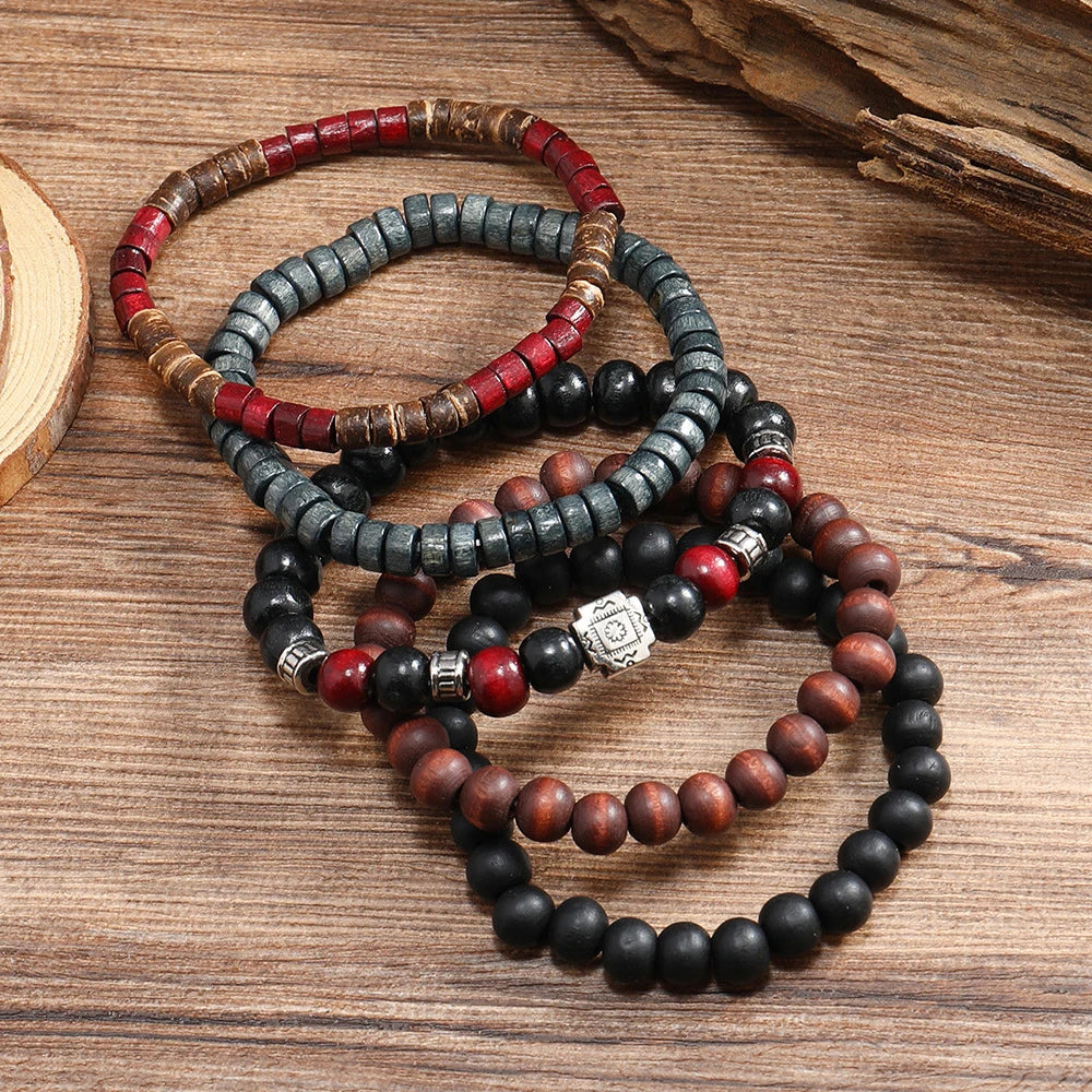 The use of coconut shell and black wood beads results in a hypoallergenic, high-quality finish that resists skin irritation. The aluminum alloy elements ensure resilience against daily wear without adding unnecessary weight, while the strand construction allows easy adjustment and comfortable fit. This multi-piece personality bracelet effortlessly merges vintage charm with modern comfort and durability, making it a standout choice for men seeking stylish, fashion-conscious accessories.