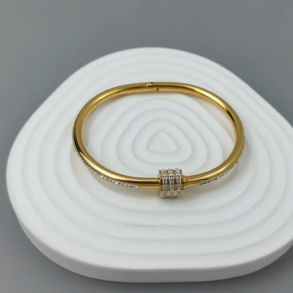 Classic Slim Waist Zircon Stainless Steel Gold-Plated Women’s Bracelet