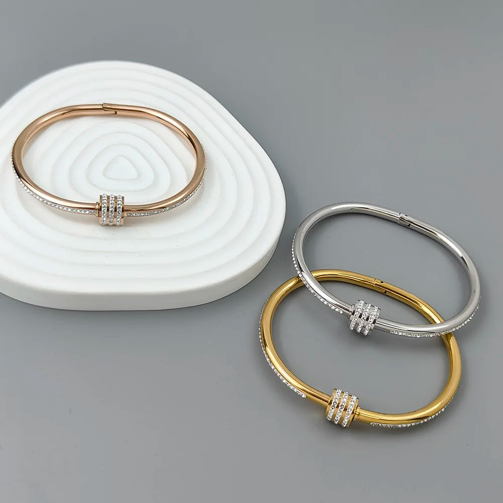 Classic slim waist zircon stainless steel gold-plated women's bracelet, high-quality waterproof metal bracelet, party jewelry
