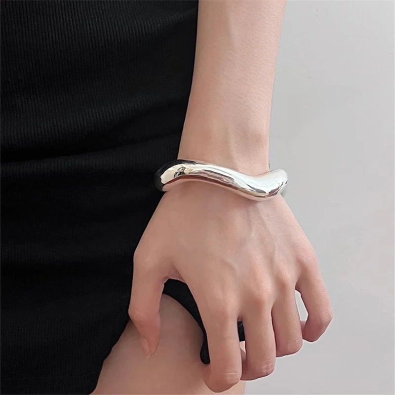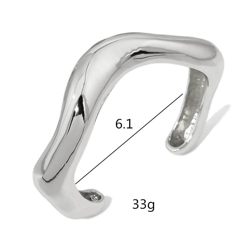 This bracelet’s iron alloy composition guarantees durability and resistance to everyday wear, while the silver plating provides an attractive shine that won’t easily fade. Its irregular geometric pattern is crafted with precision, ensuring each piece delivers a trendy, standout look without compromising comfort. Suitable for fashion enthusiasts concerned about chemical sensitivities, this cuff includes no high-concern chemicals, making it a safe and stylish addition to any jewelry collection.