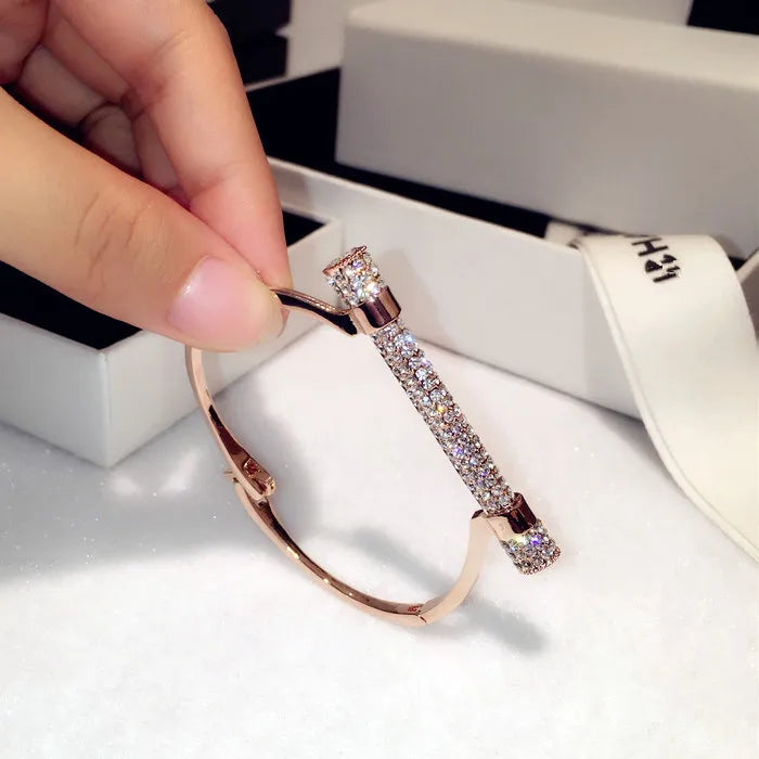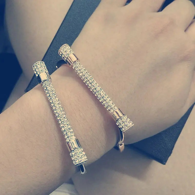 The bracelet uses advanced diamond-setting technology (pave setting), ensuring each rhinestone is securely positioned to maximize sparkle and longevity. The toggle clasp provides both functionality and style, allowing easy adjustment while maintaining a sleek look. Its geometric modeling adds a sophisticated edge, making it versatile enough for both formal events and everyday fashion.