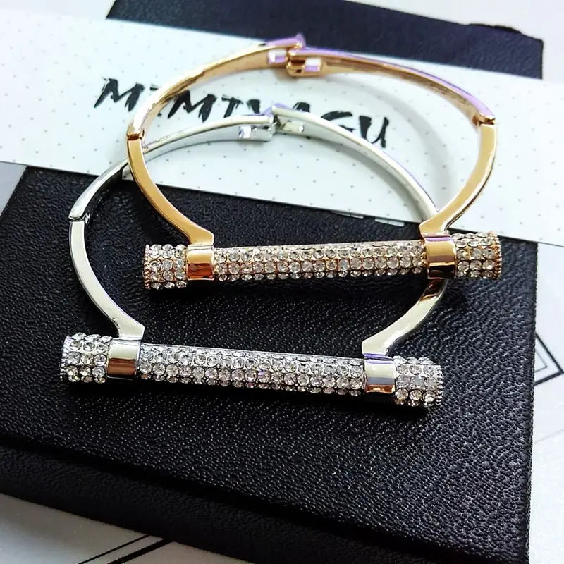 Compared to standard fashion bracelets, this luxury full crystal cuff bangle stands out with its geometric pattern and European & American style influences. Unlike simpler designs, this bracelet boasts a dense arrangement of rhinestones, enhancing its brilliance and making it an eye-catching piece. Its zinc alloy construction offers durable wear while maintaining a lightweight feel, surpassing many industry alternatives that often compromise either comfort or aesthetics.