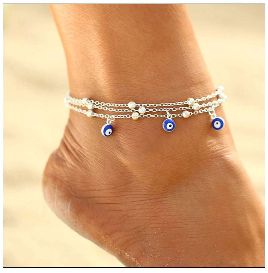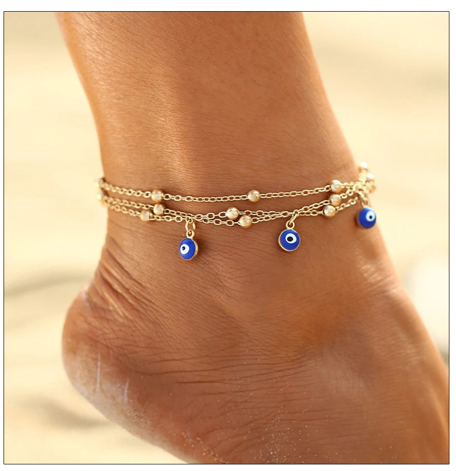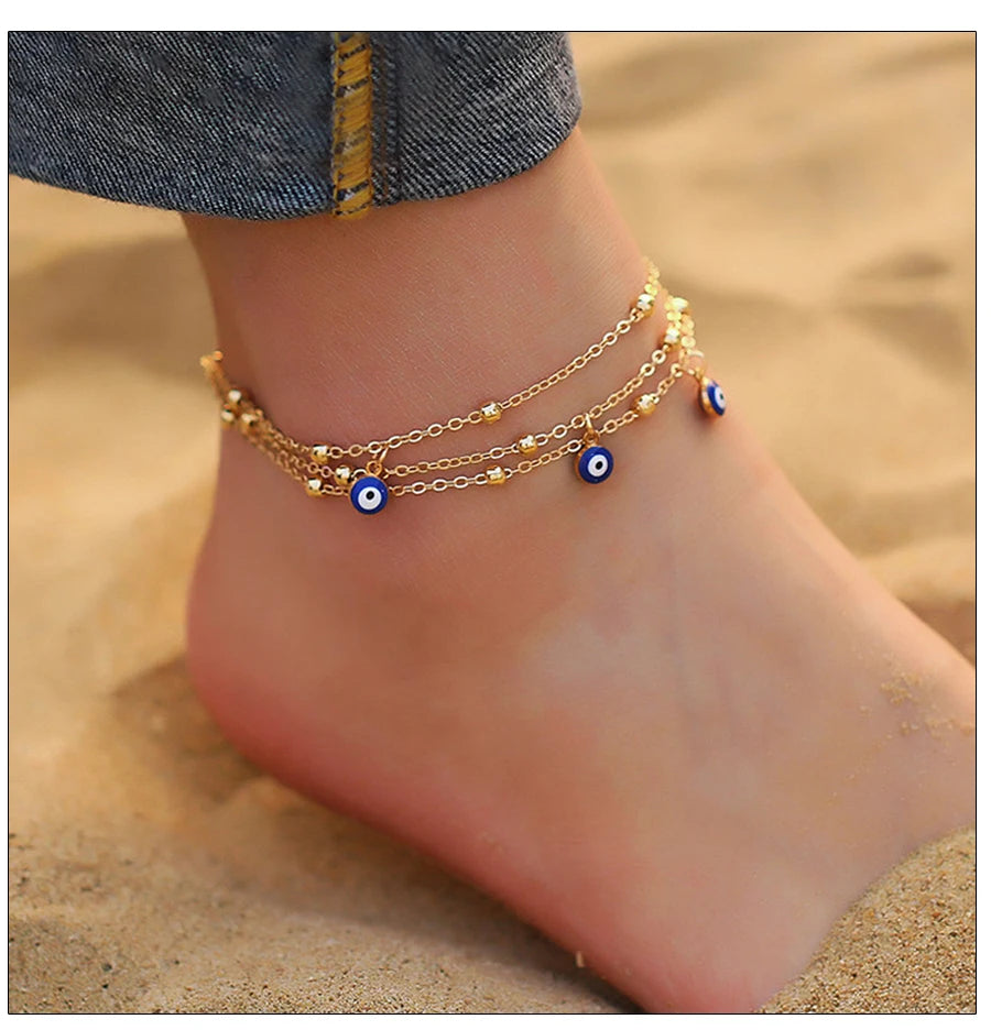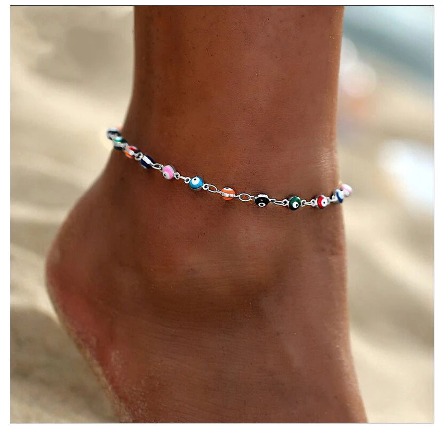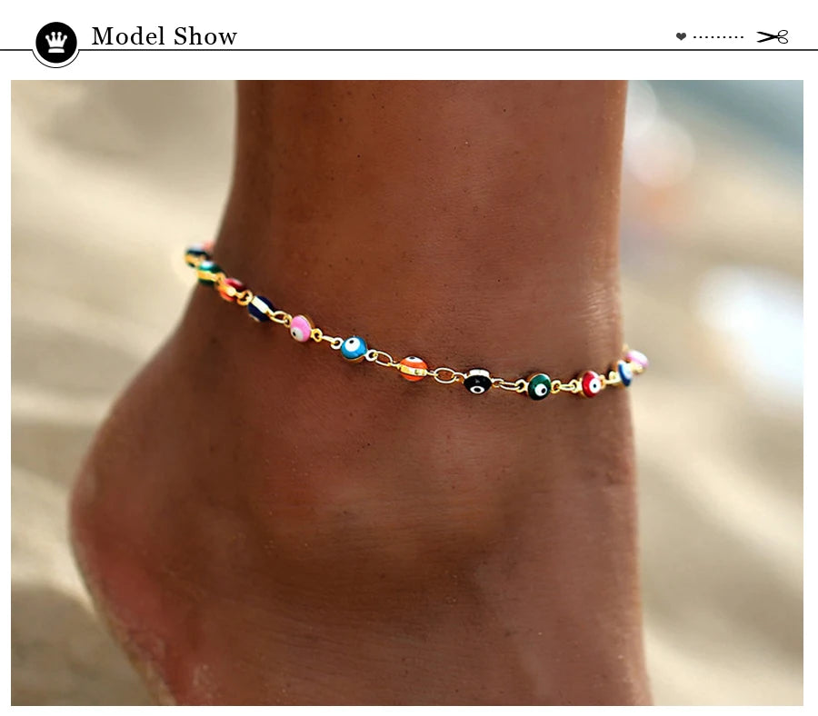 Fashion Colorful Turkish Eyes Anklets for Women Charm Gold Color Beads Pendant barefoot sandals Anklet Foot Jewelry Accessories