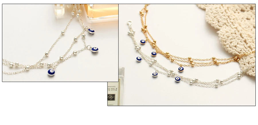 Crafted with zinc alloy, these anklets resist tarnish and maintain their shine longer than typical fashion metals. The length and fit are perfectly tailored for women, ensuring both comfort and style during extended wear. The colorful Turkish eye beads are not only a fashion statement but also symbolize protection, giving your look added significance. With express shipping options for orders over $150, upgrading your anklet collection has never been easier or faster.
