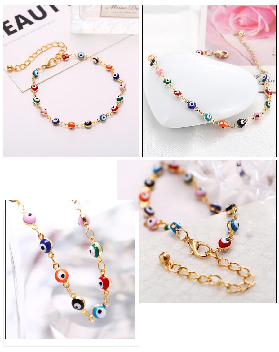 Fashion Colorful Turkish Eyes Anklets for Women Charm Gold Color Beads Pendant Barefoot Sandals Anklet Foot Jewelry Accessories