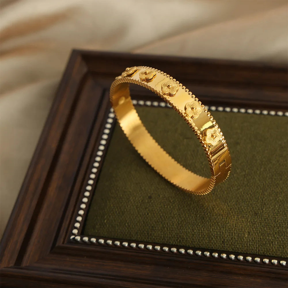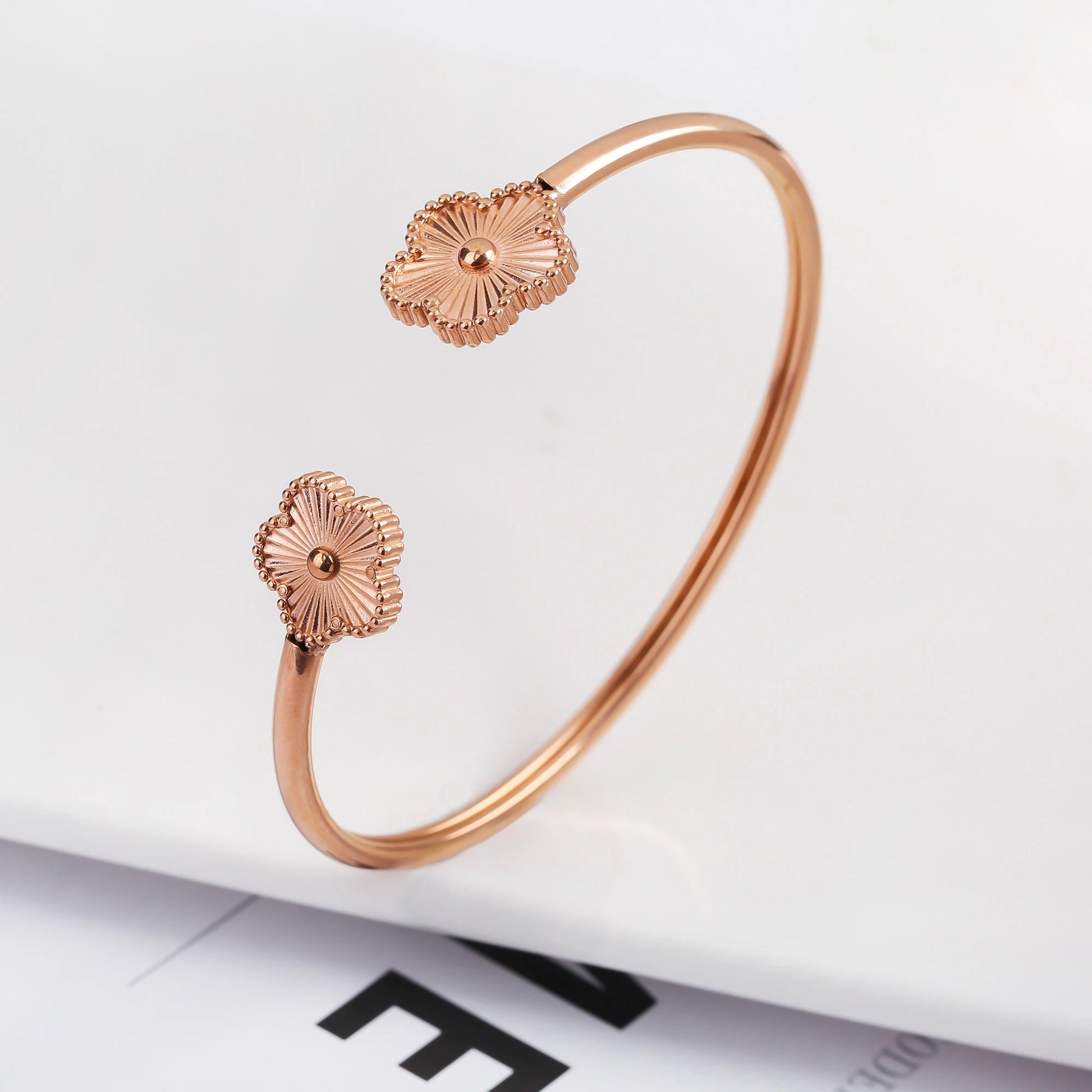 Fashionable New Design Stainless Steel Metal Gold Silver Five Leaf Flower Bracelet High Quality Women's Temperament Gift Clover