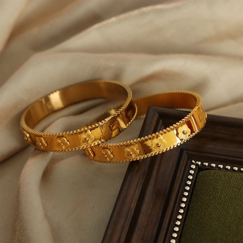 This charming bracelet features a modern design crafted from high-quality stainless steel, combining durability with an elegant gold and silver finish. Its five leaf flower motif adds a delicate, nature-inspired touch that enhances any outfit.
