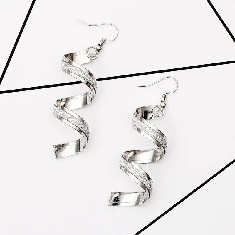 Foreign Trade New Personality Wild Spiral Curved Geometric Earrings Frosted Earrings Design Sense Wave Curve Earrings Jewelry