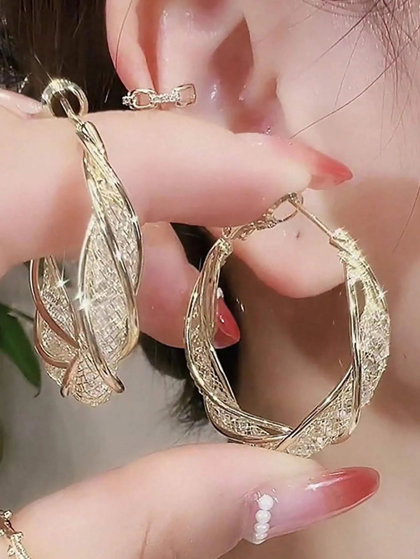 Compared to other fashion hoop earrings in the market, these earrings stand out with their complex mesh style that blends sophistication and trendiness. Unlike previous models that often use lighter or less durable metals, these earrings’ iron alloy construction provides enhanced durability and a luxurious gold tone that resists tarnishing during typical wear. Their moderate weight adds a substantial feel without compromising comfort.