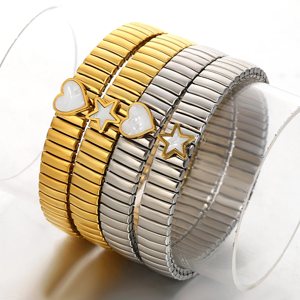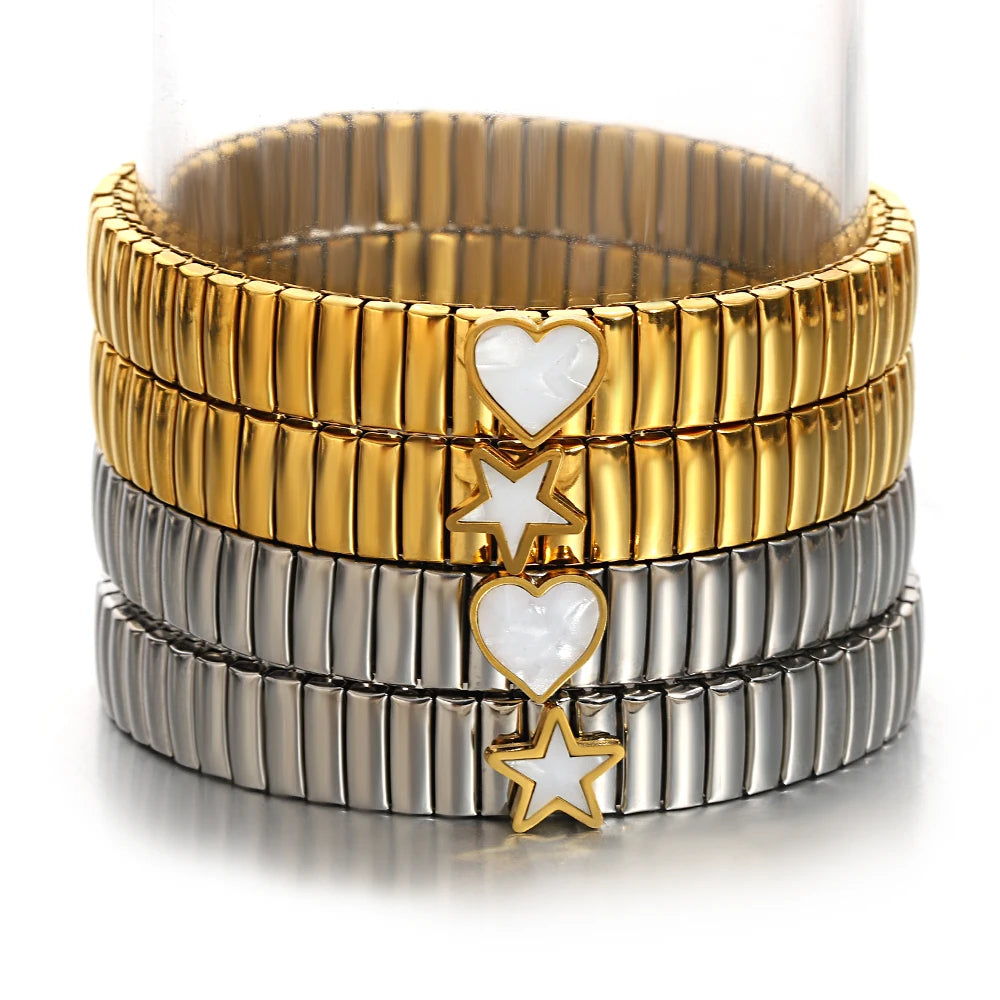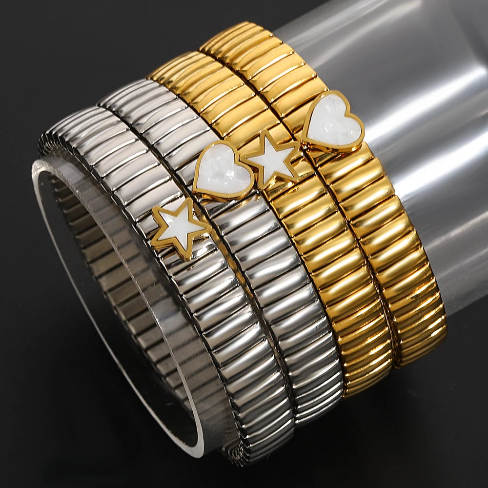 Greatera Elastic Love Ring Bangle For Women Men Fashion Multiple Stainless Steel Star Pattern Charm Watch Strap Bracelet Jewelry
