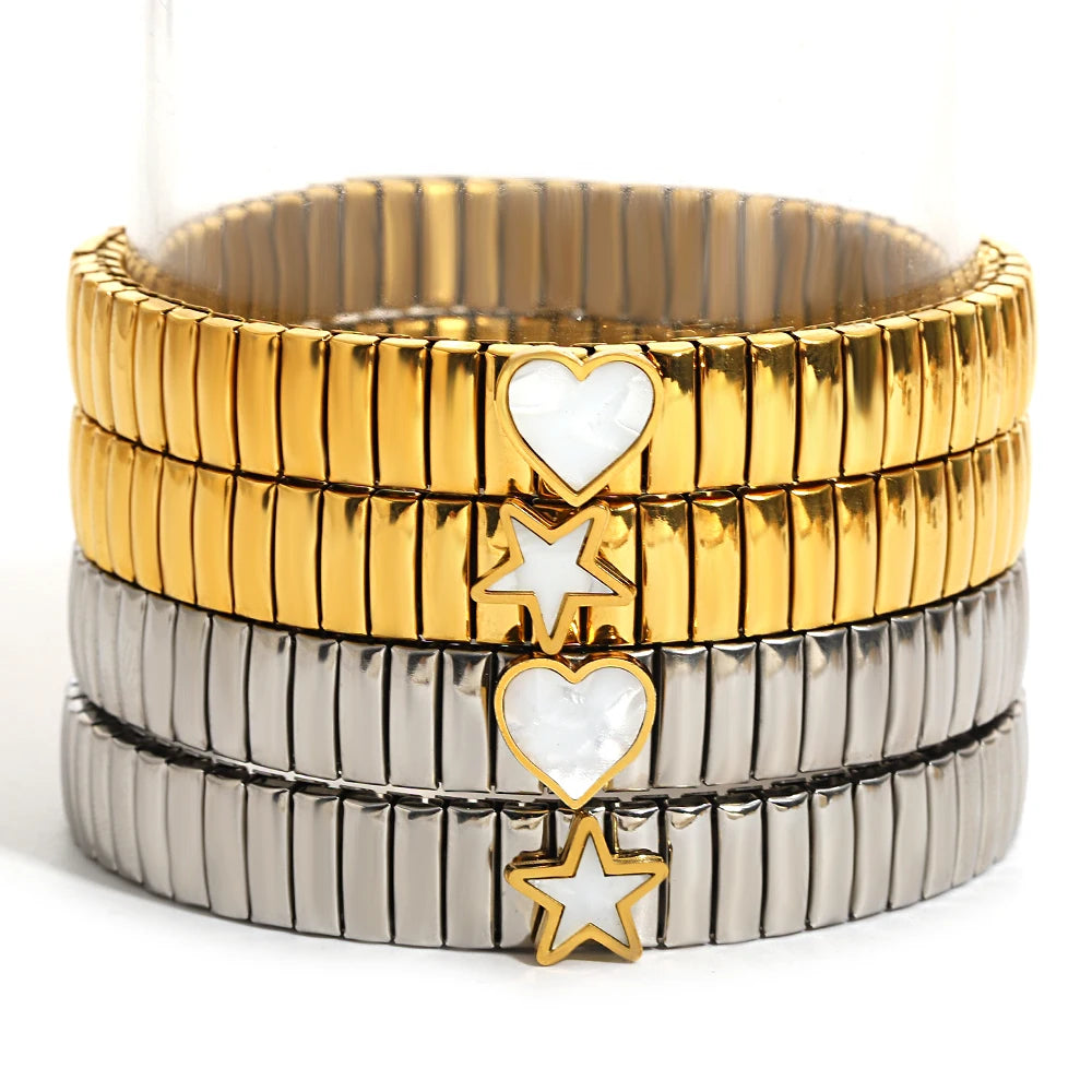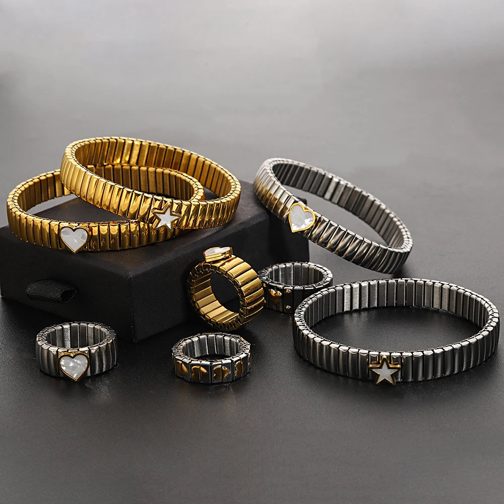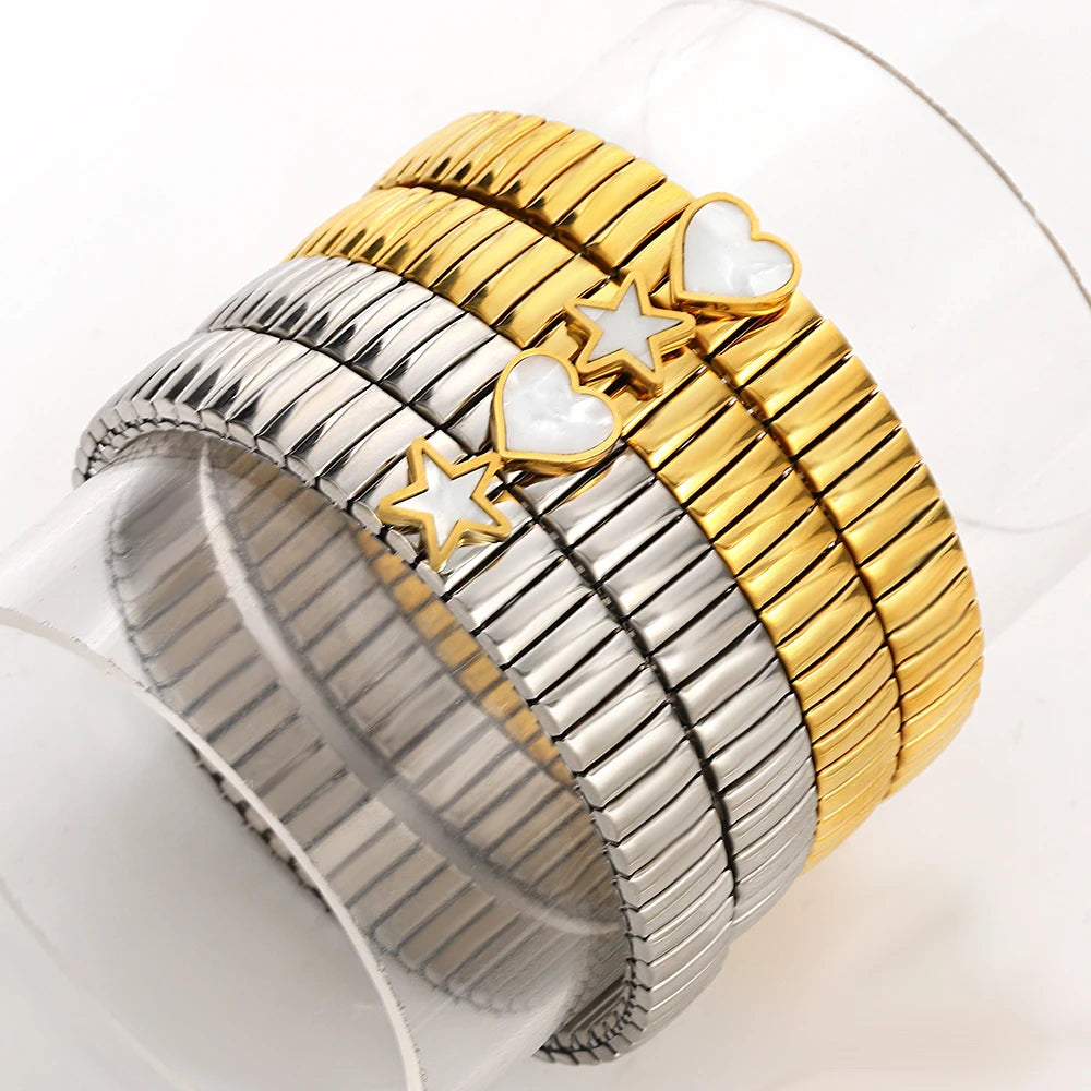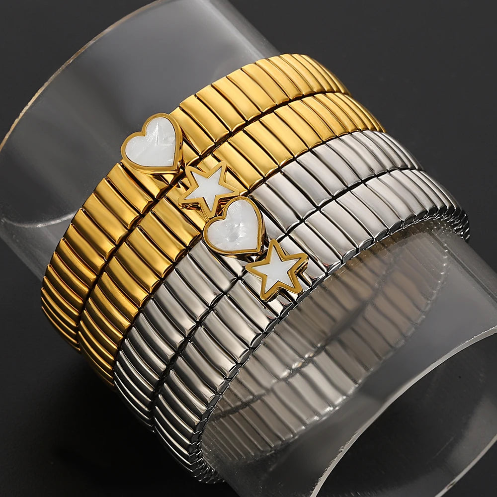 Greatera Elastic Love Ring Bangle For Women Men Fashion Multiple Stainless Steel Star Pattern Charm Watch Strap Bracelet Jewelry