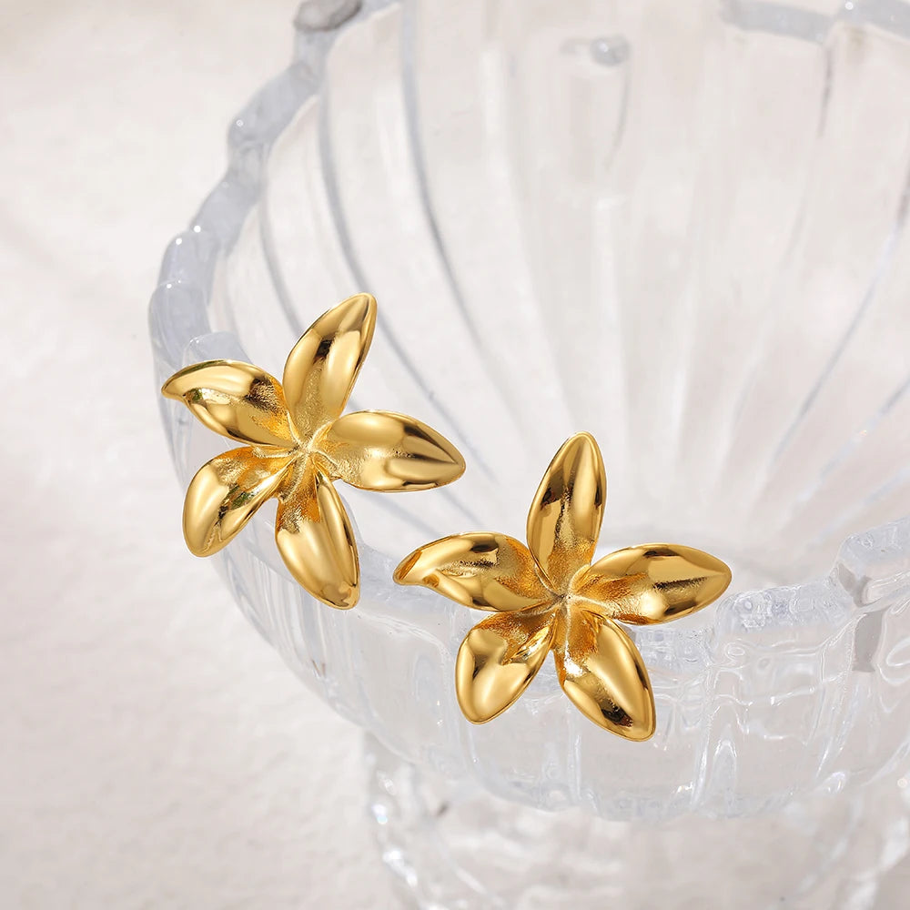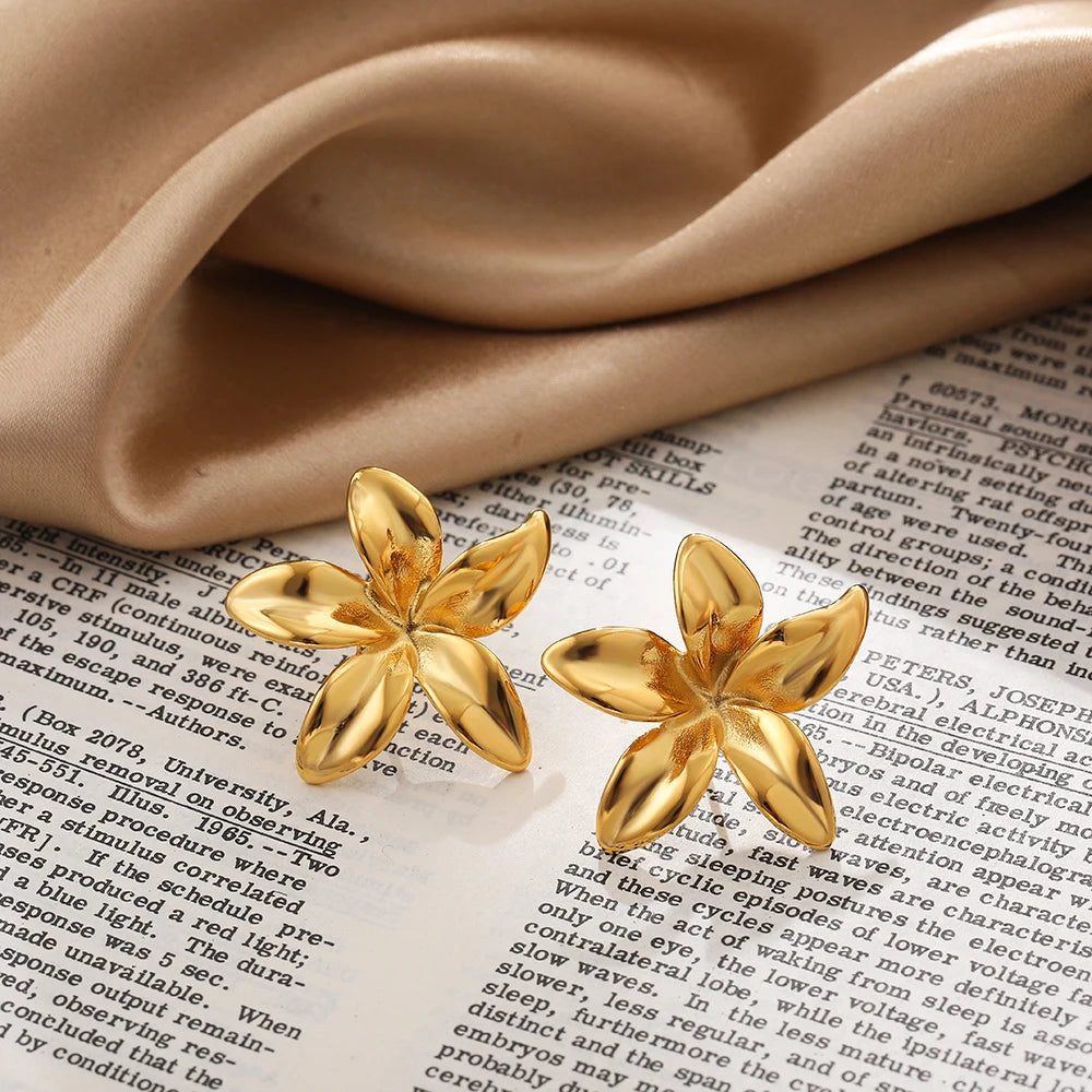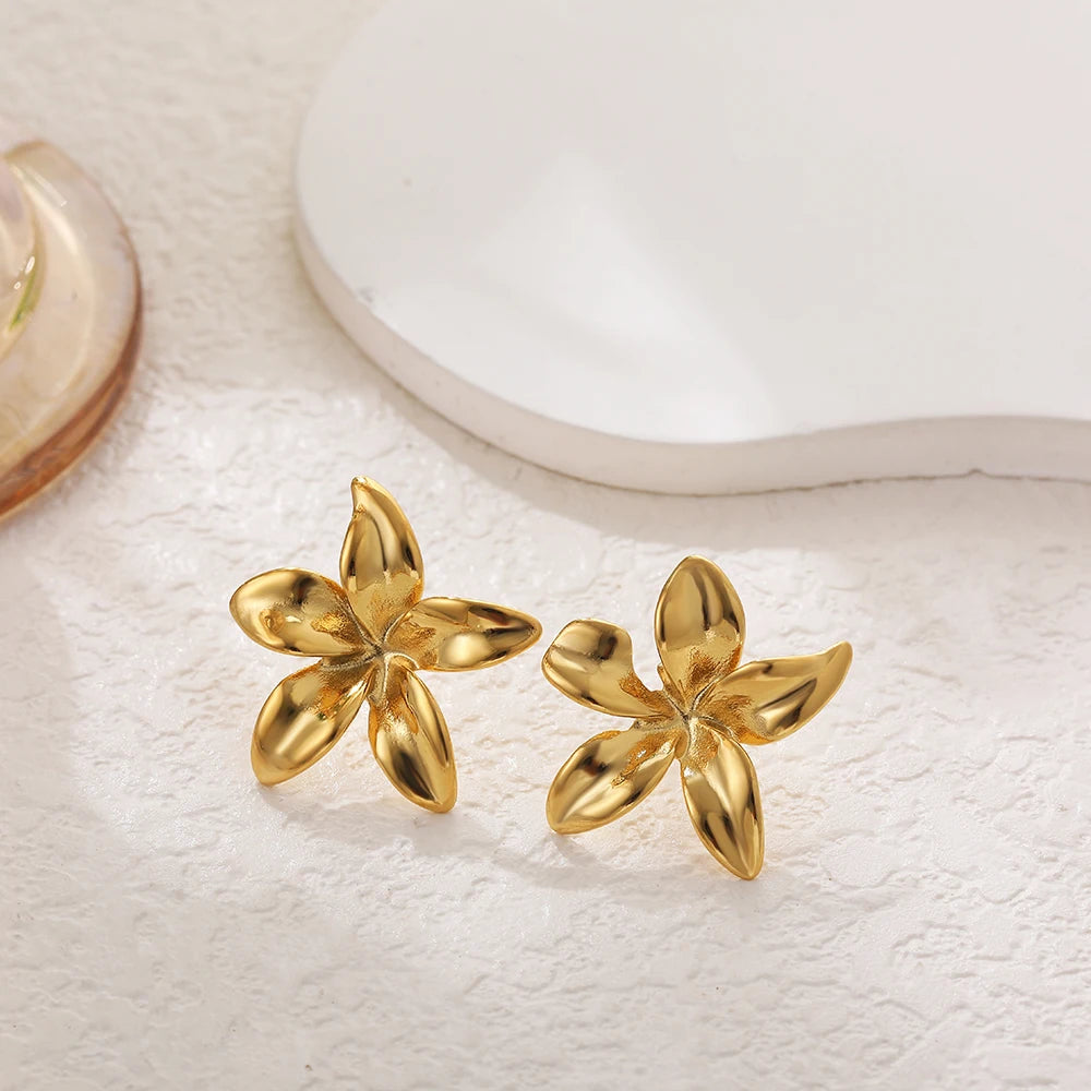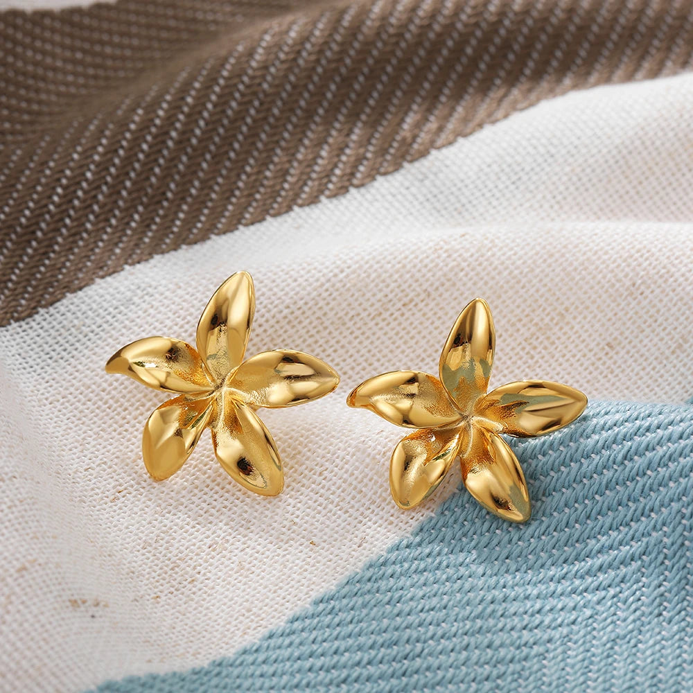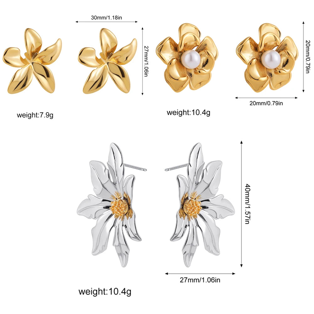 Hypoallergenic Stylish Vintage Flower Stud Earrings Personality 18k Gold Plated Stainless Steel Jewelry for Women Accessories