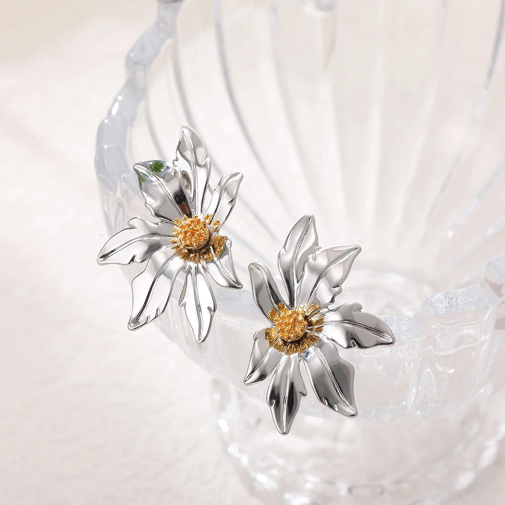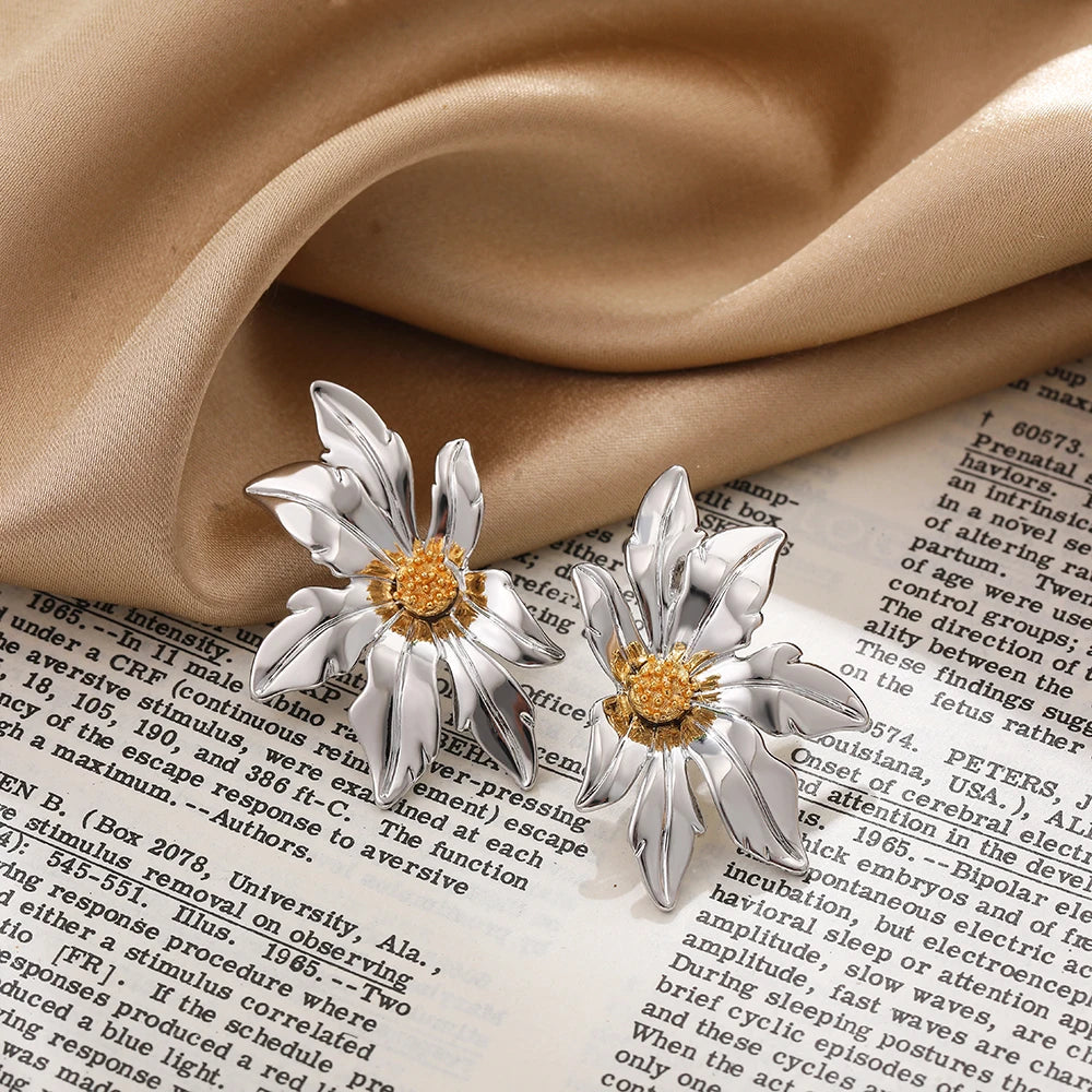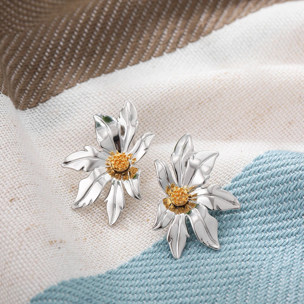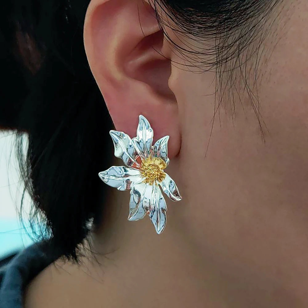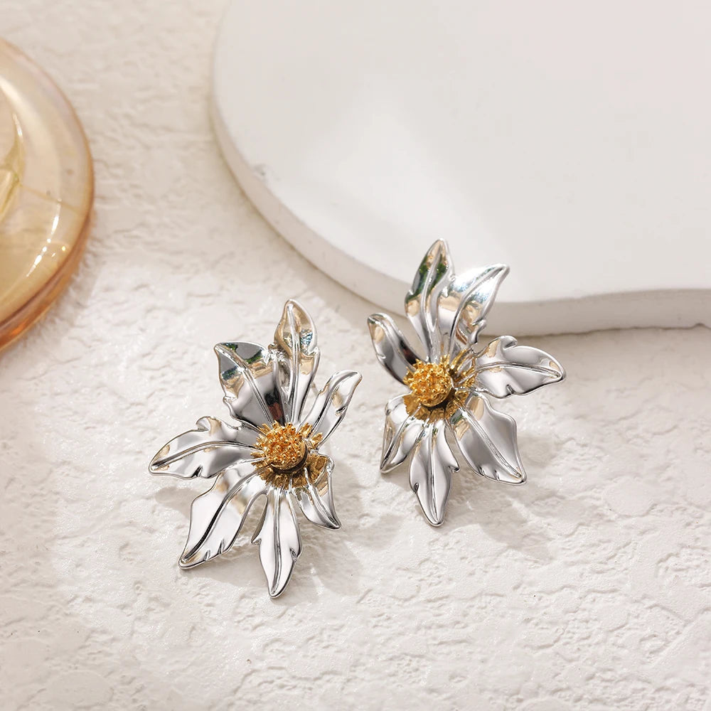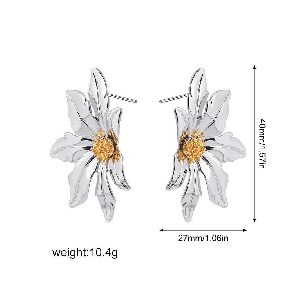 Hypoallergenic Stylish Vintage Flower Stud Earrings Personality 18k Gold Plated Stainless Steel Jewelry for Women Accessories