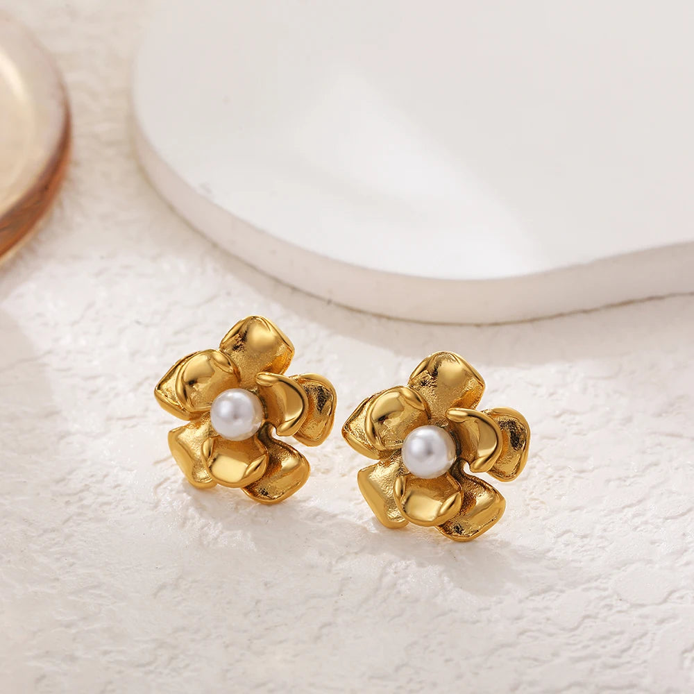 These stylish vintage flower stud earrings combine timeless design with modern materials to create a beautiful fashion statement. Crafted with 18k gold plated stainless steel, they ensure durability and hypoallergenic comfort for everyday wear.