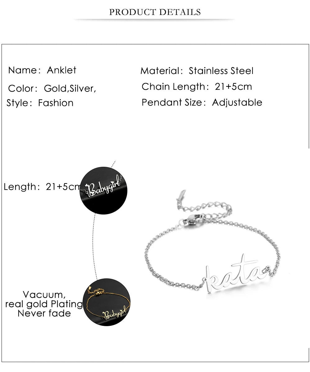 Crafted from premium stainless steel, this customized name anklet delivers exceptional durability and corrosion resistance, ideal for everyday use. The adjustable chain length enhances comfort, while the expertly crafted letter pattern provides a stylish, personalized detail that truly sets it apart. Its resistance to fading even in water ensures it remains vibrant and fashionable season after season, perfectly suited for beachwear and summer accessories.