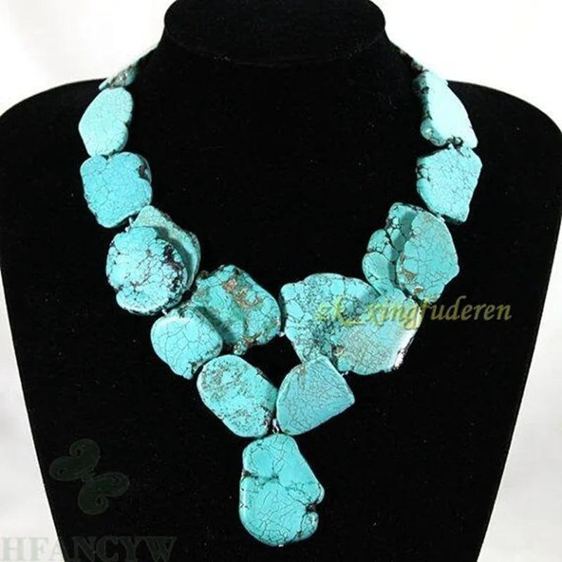 This elegant double necklace features natural turquoise flakes intricately tied into a striking turquoise flake pendant, designed to elevate any outfit with a bohemian flair. Crafted for women who appreciate fine jewelry, this necklace combines unique geometric patterns with vibrant turquoise stones that symbolize luck and spirituality.