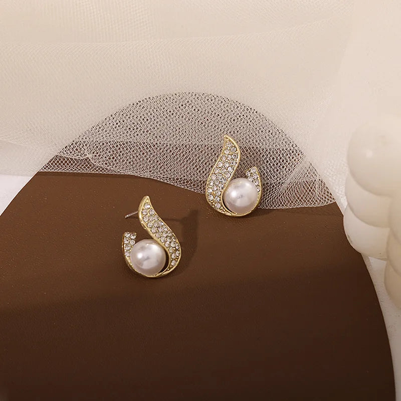 New Fashion Crystal Women's Unusual Earrings Gold Color Flame Pearl Stud Earrings Korean Style Ear Jewelry boucle d'oreilles