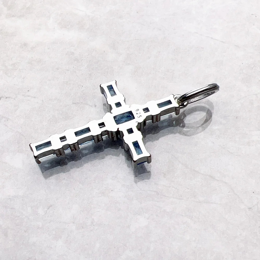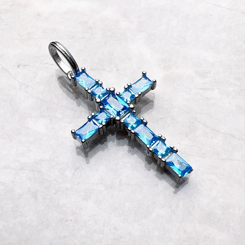 Pendant Cross with Aquamarine Stones – Charms & Pendants