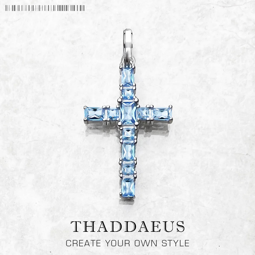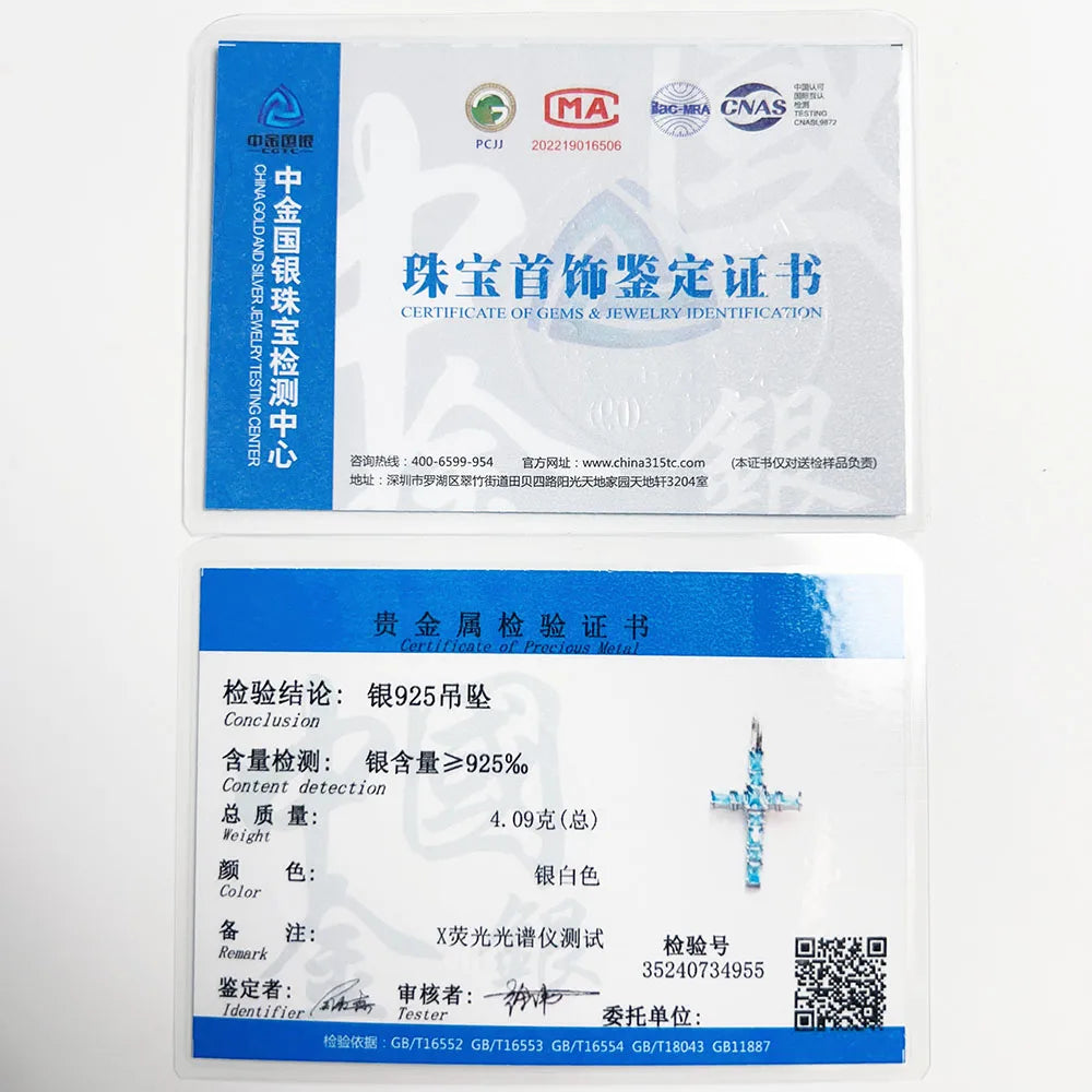 Pendant Cross with Aquamarine Stones Brand New Fine Jewelry 925 Sterling Silver Accessories Romantic Gift For Woman