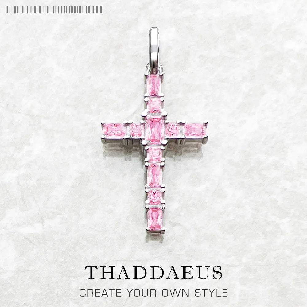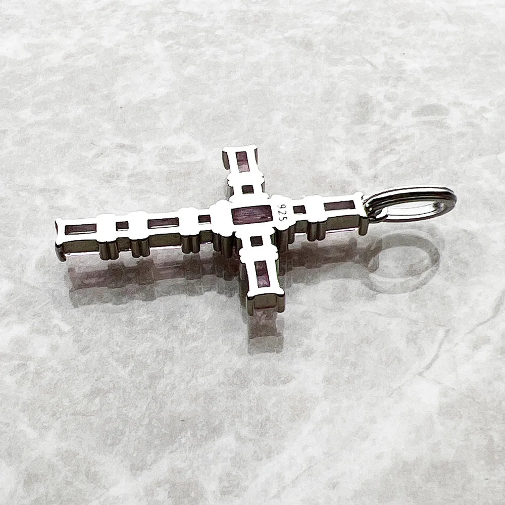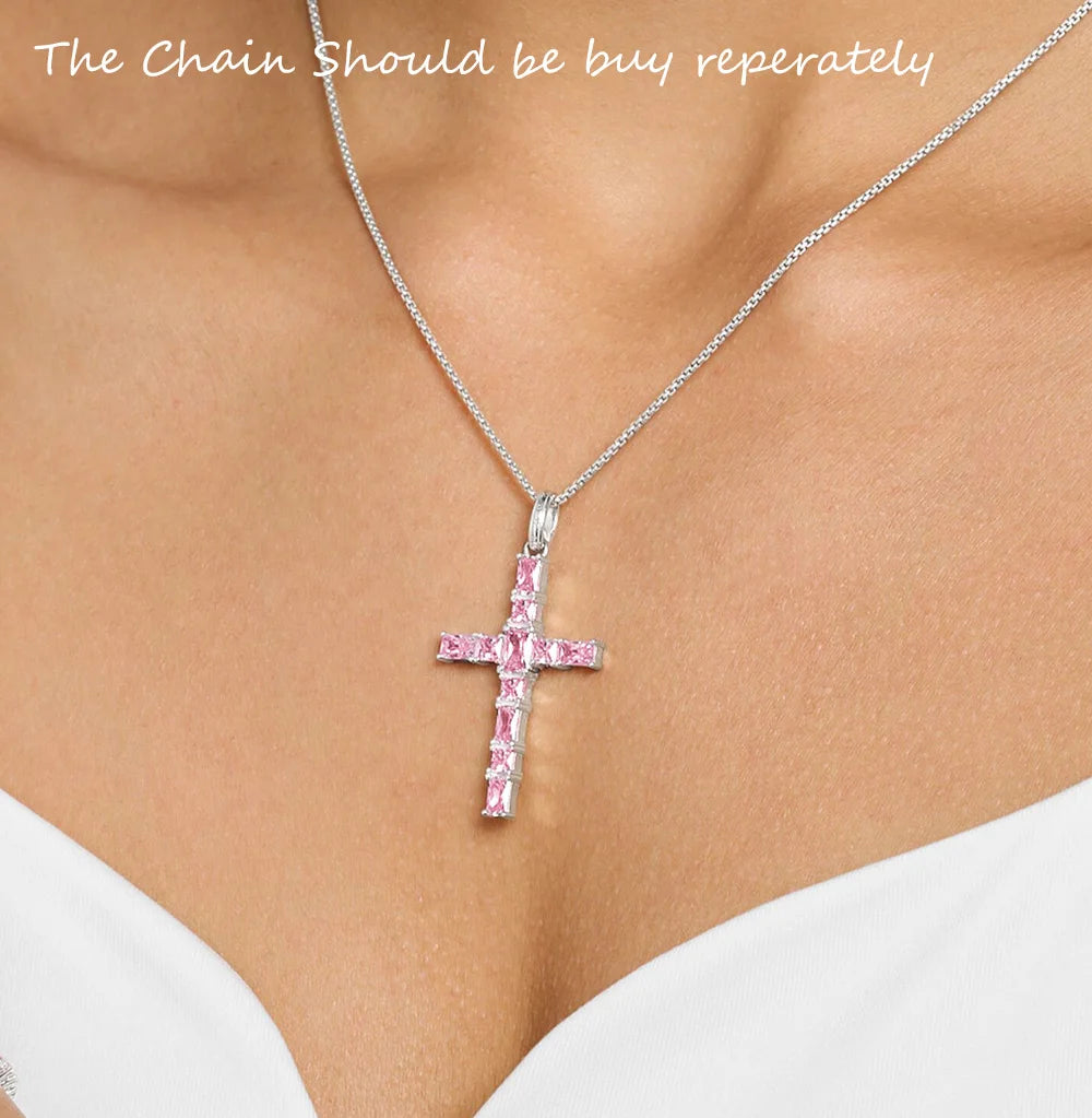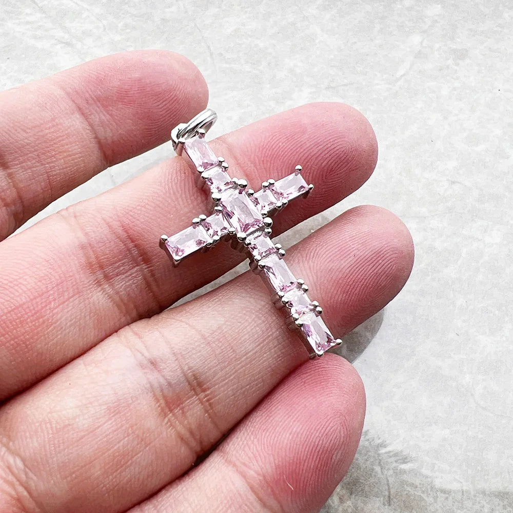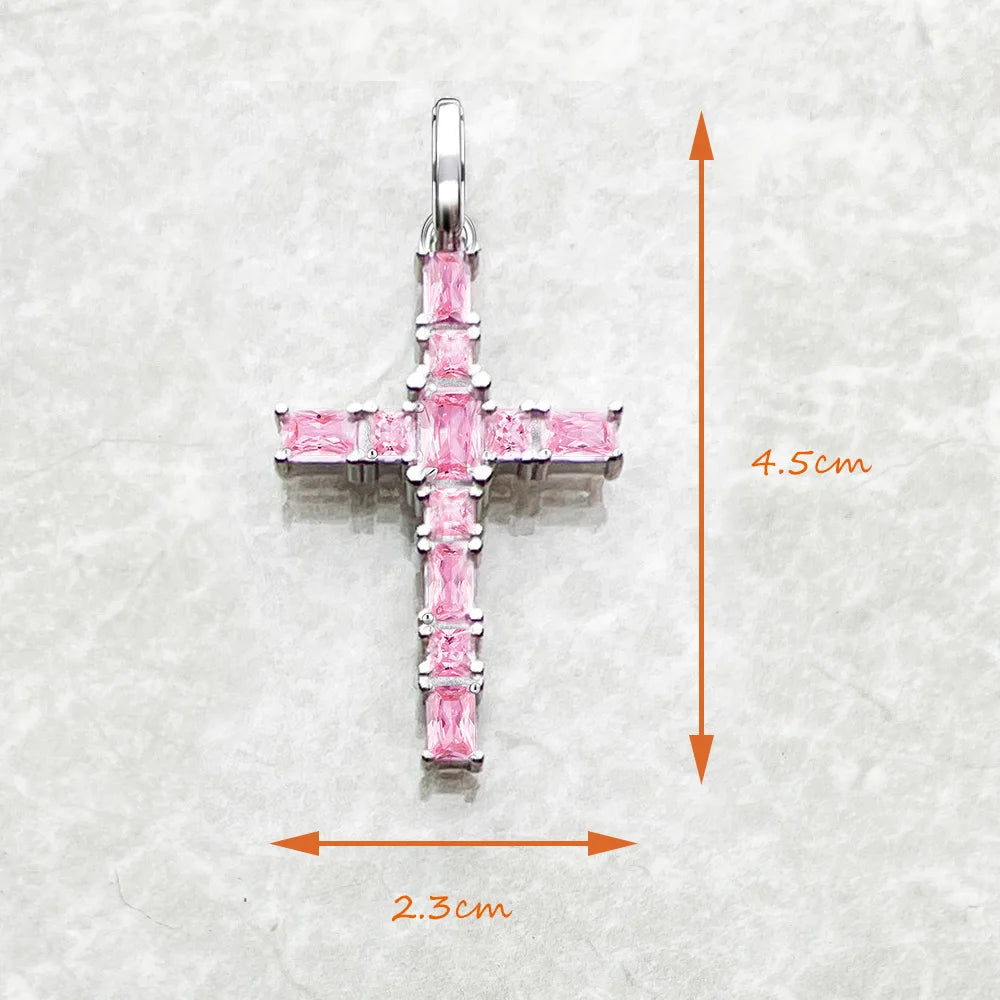 This exquisite pendant cross showcases a timeless design crafted from high-quality 925 sterling silver, featuring vibrant pink zircon stones that catch the light with every movement. Its delicate size and romantic style make it an ideal accessory for daily wear or special occasions.