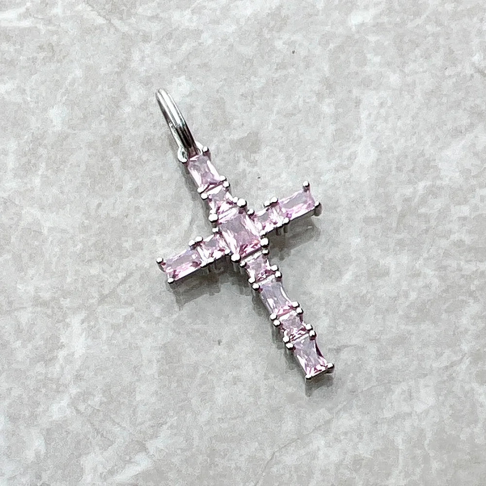 Compared to standard pendants on the market, this pendant cross stands out with its precise hand-set stones and superior metal quality, meeting EU and AU high-quality standards. Unlike mass-produced pieces, the open prong setting enhances the natural brilliance of the pink zircon stones, offering a more radiant and captivating visual effect. Its fine craftsmanship far exceeds what is typical for similar jewelry in this price range.