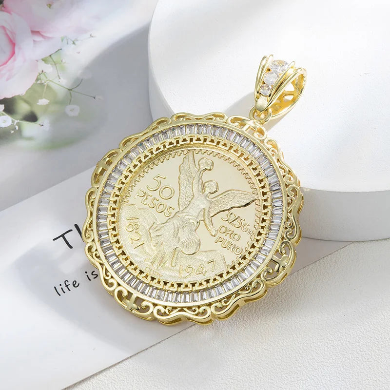 Pendants Catholic virgin guadalupe 14K Gold Plated 50 Peso Medal Style pendant for men gift accessories Religious Pendants