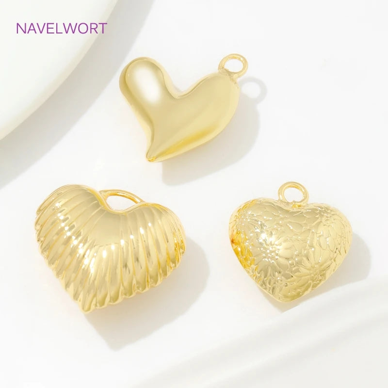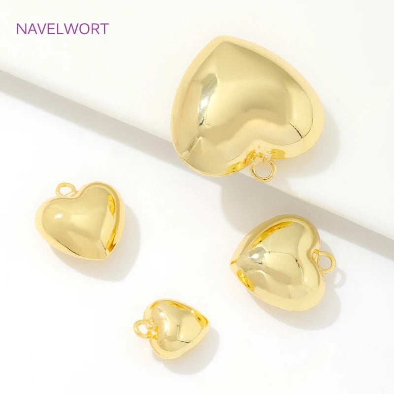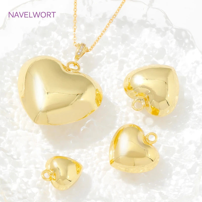 These exquisite pendants feature a high-quality brass base luxuriously coated with 18K gold plating for lasting color retention and durability. Designed specifically for DIY jewelry enthusiasts, each heart charm offers a polished, smooth surface that enhances its elegance and versatility.