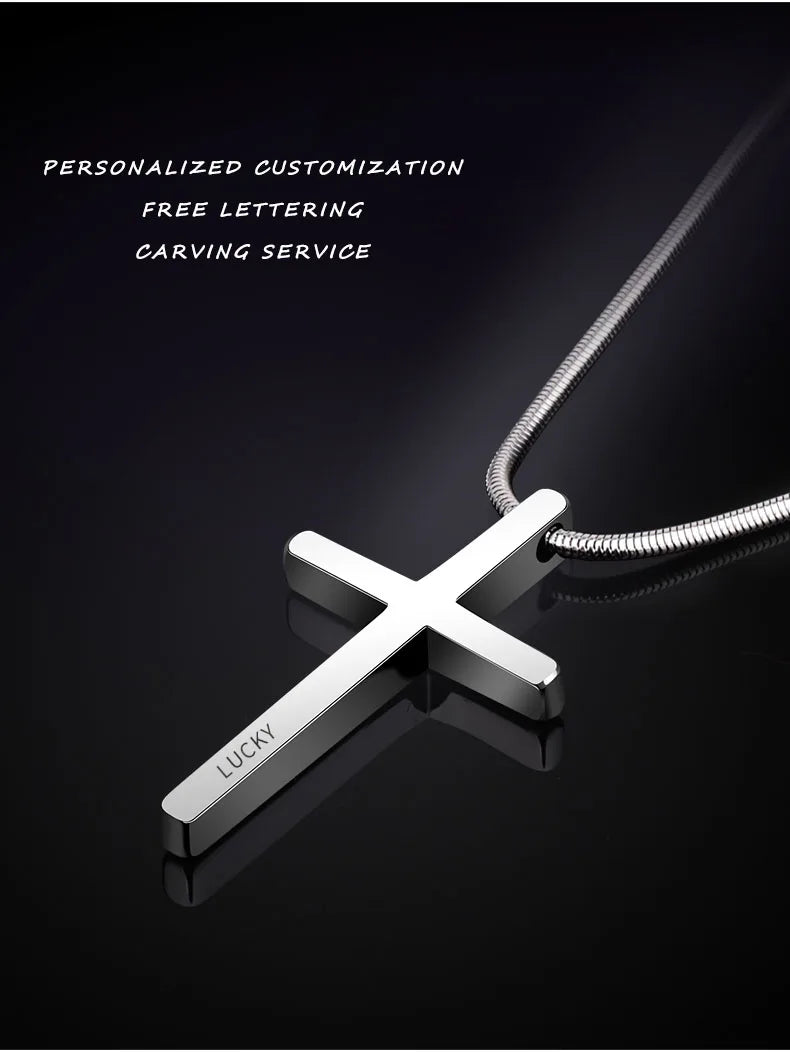 Pendants for Men Classic Design Cross Tungsten Necklace with Snake Stainless Steel Chain 45/50/55cm, Engraving