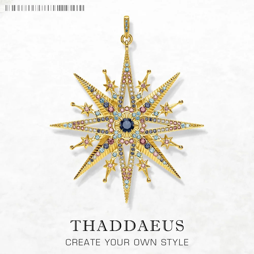 Pendants Royalty Star Golden,Spring Jewelry Vintage 925 Sterling Silver Accessorie Handcrafted Gift For Women Men