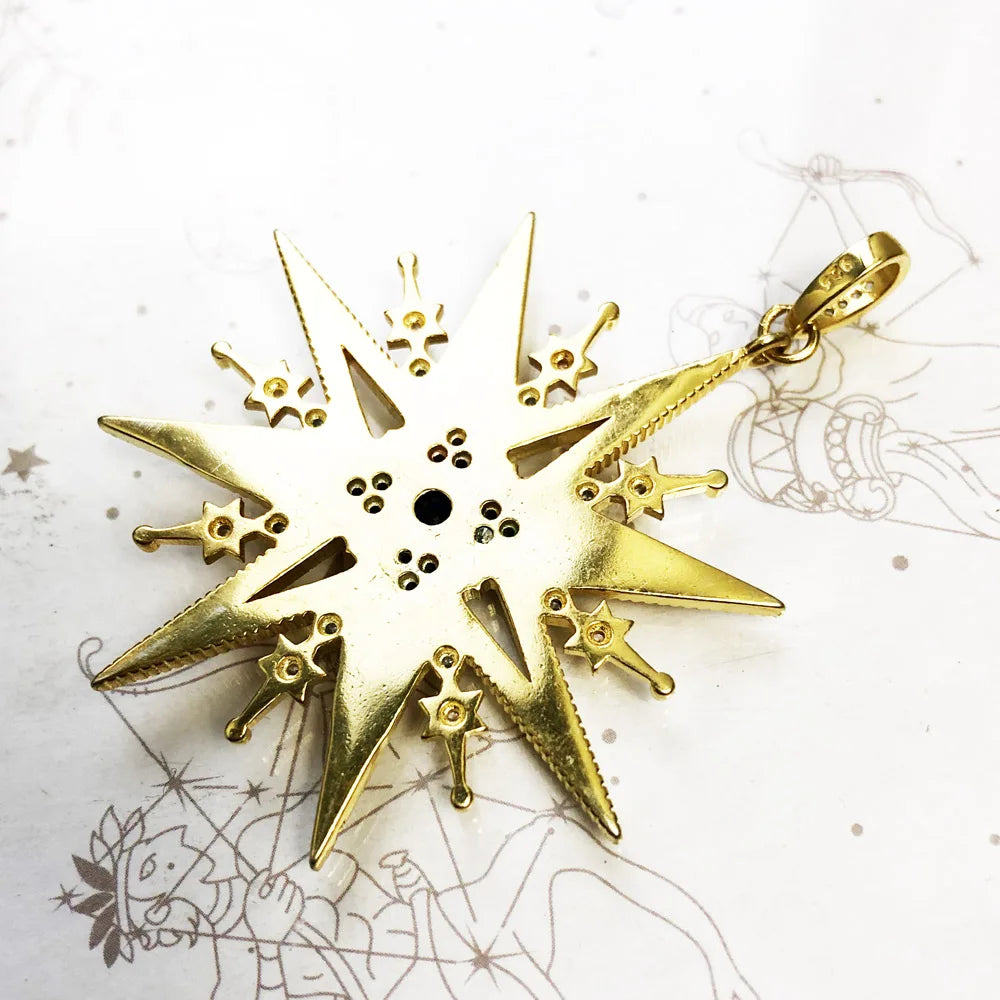 Crafted from high-quality 925 sterling silver and plated with luxurious 18K gold, this vintage-inspired pendant features a striking royalty star design. Handcrafted with precision, it offers a perfect blend of classic elegance and bohemian charm.