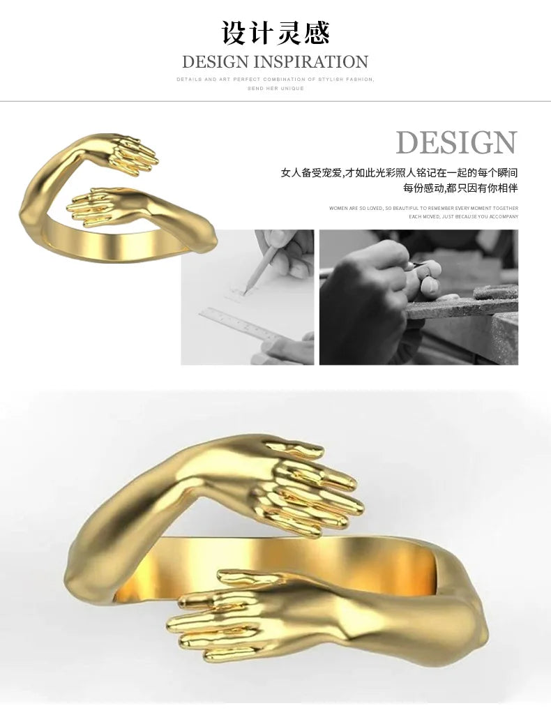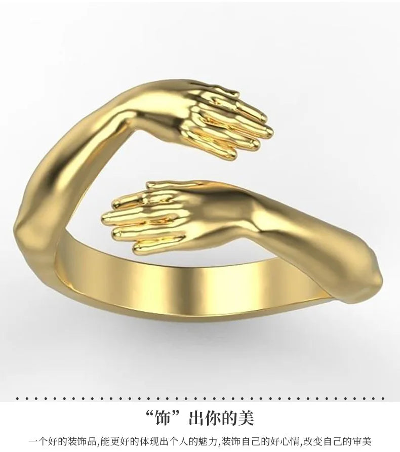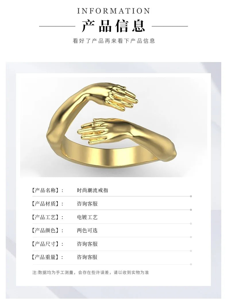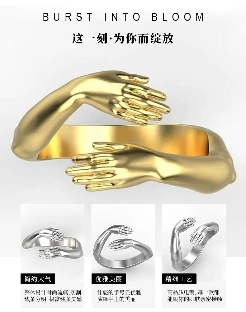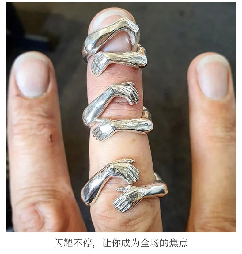 Rings 2025 Trend Jewelry Hands Hug Punk Personality Open Dropshipping Rings for Women Men