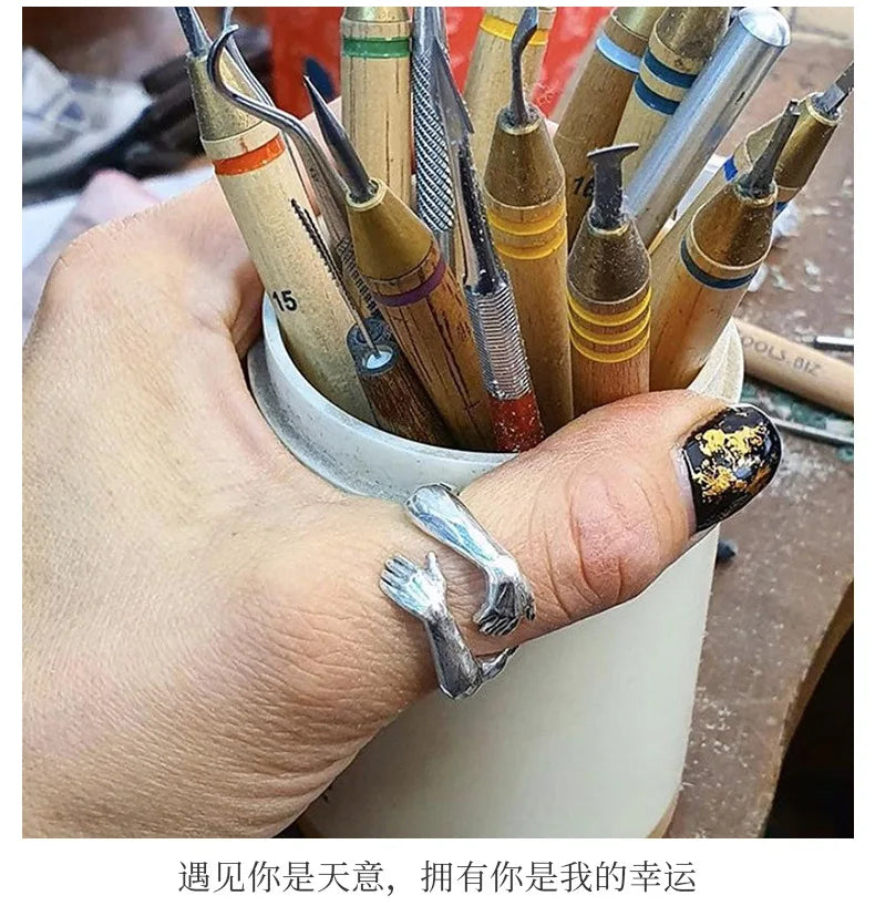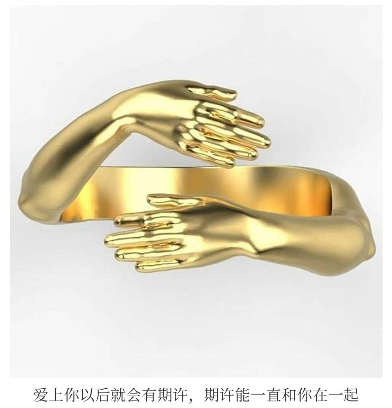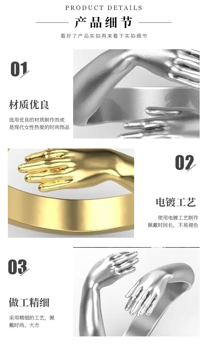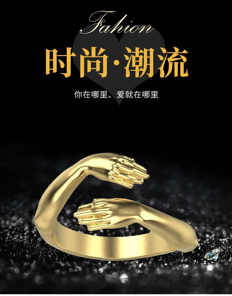 Rings 2025 Trend Jewelry Hands Hug Punk Personality Open Dropshipping Rings for Women Men