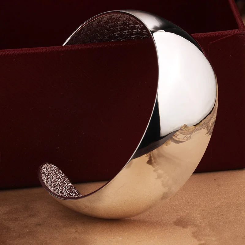 Simple Glossy Talisman 925 Silver Bracelet Women's Ethnic Style Fashion Wide Bracelet Open Stacked Jewelry